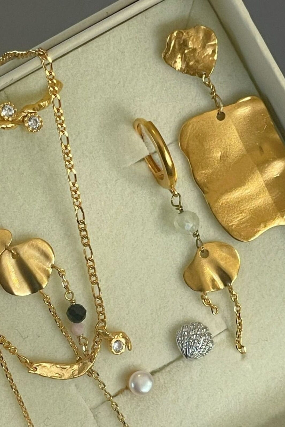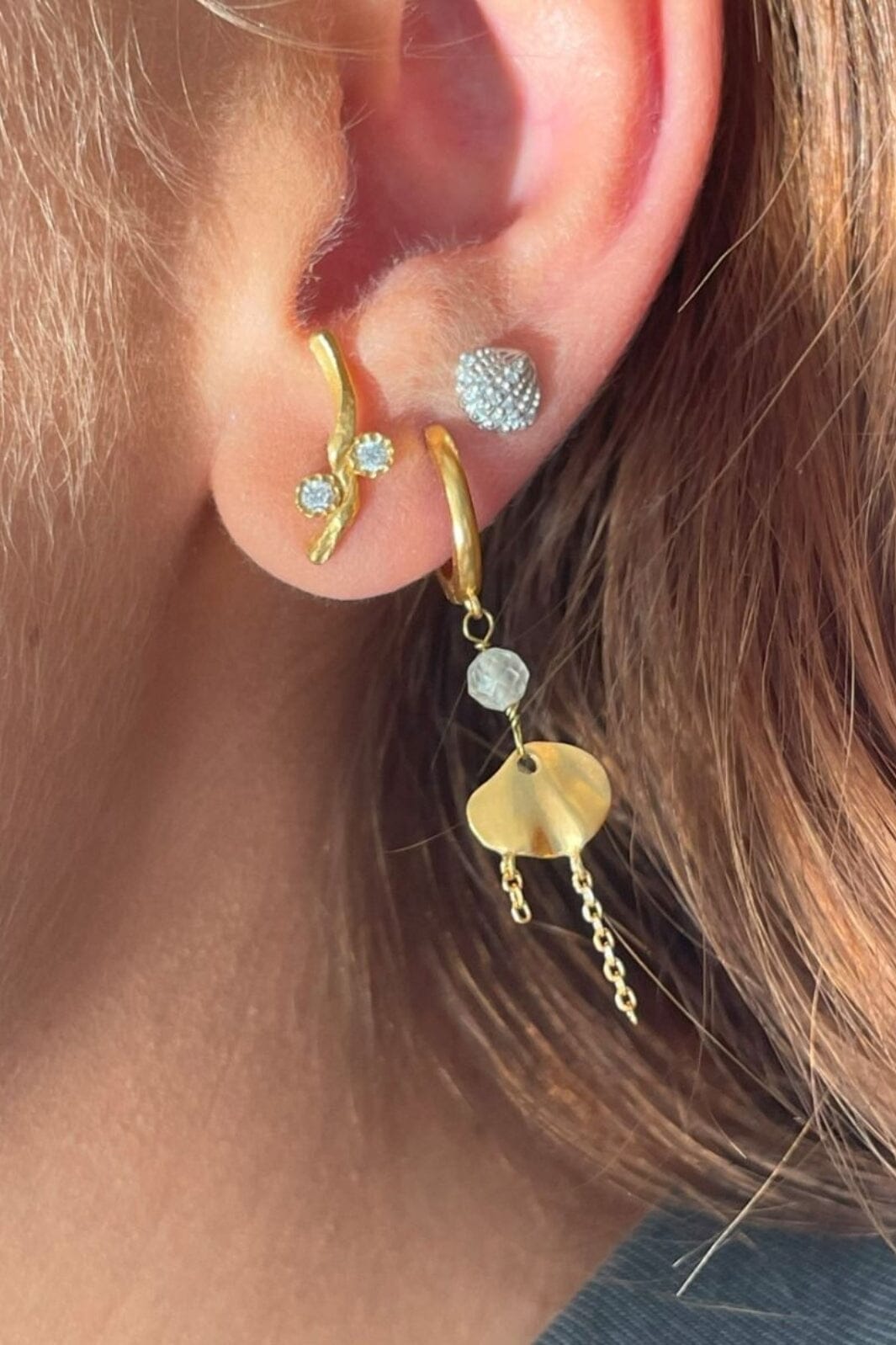Het combineren van Stine A-sieraden draait om het creëren van een persoonlijke stijl. Behind-ear oorbellen kunnen worden gecombineerd met kleinere studs voor een gedurfde look, terwijl verschillende ringen met edelstenen kunnen worden gestapeld voor een speelse uitstraling. De emaille details in verschillende kleuren, van kobaltblauw tot burgundy, maken het mogelijk om kleuraccenten toe te voegen aan elke outfit.