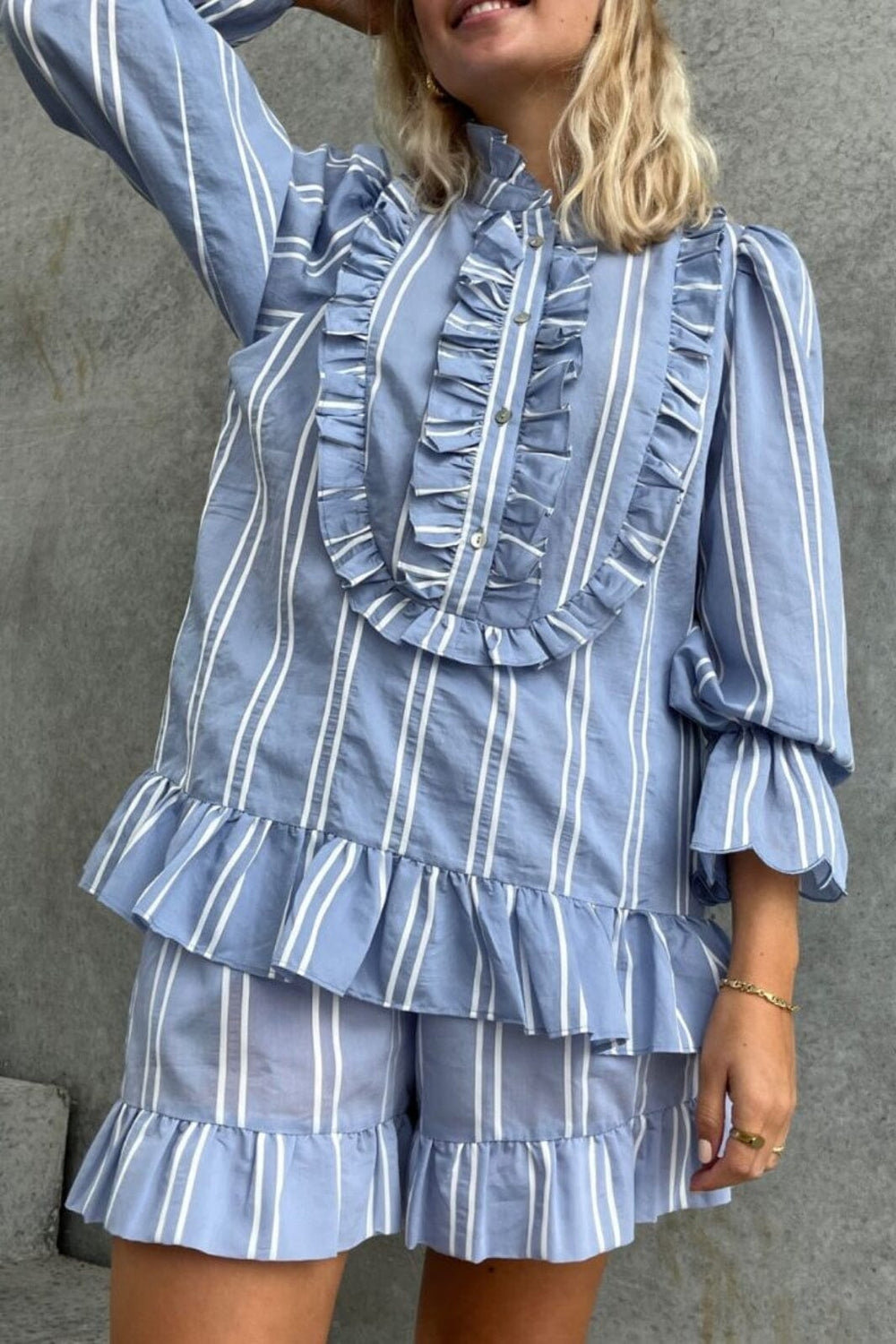 Deze kledingstukken vullen elkaar perfect aan in de garderobe. Van jurken met oceaanmotieven tot shirts met verfijnde details; de collectie biedt opties voor verschillende gelegenheden. Elk item is zorgvuldig ontworpen met aandacht voor moderne silhouetten.
