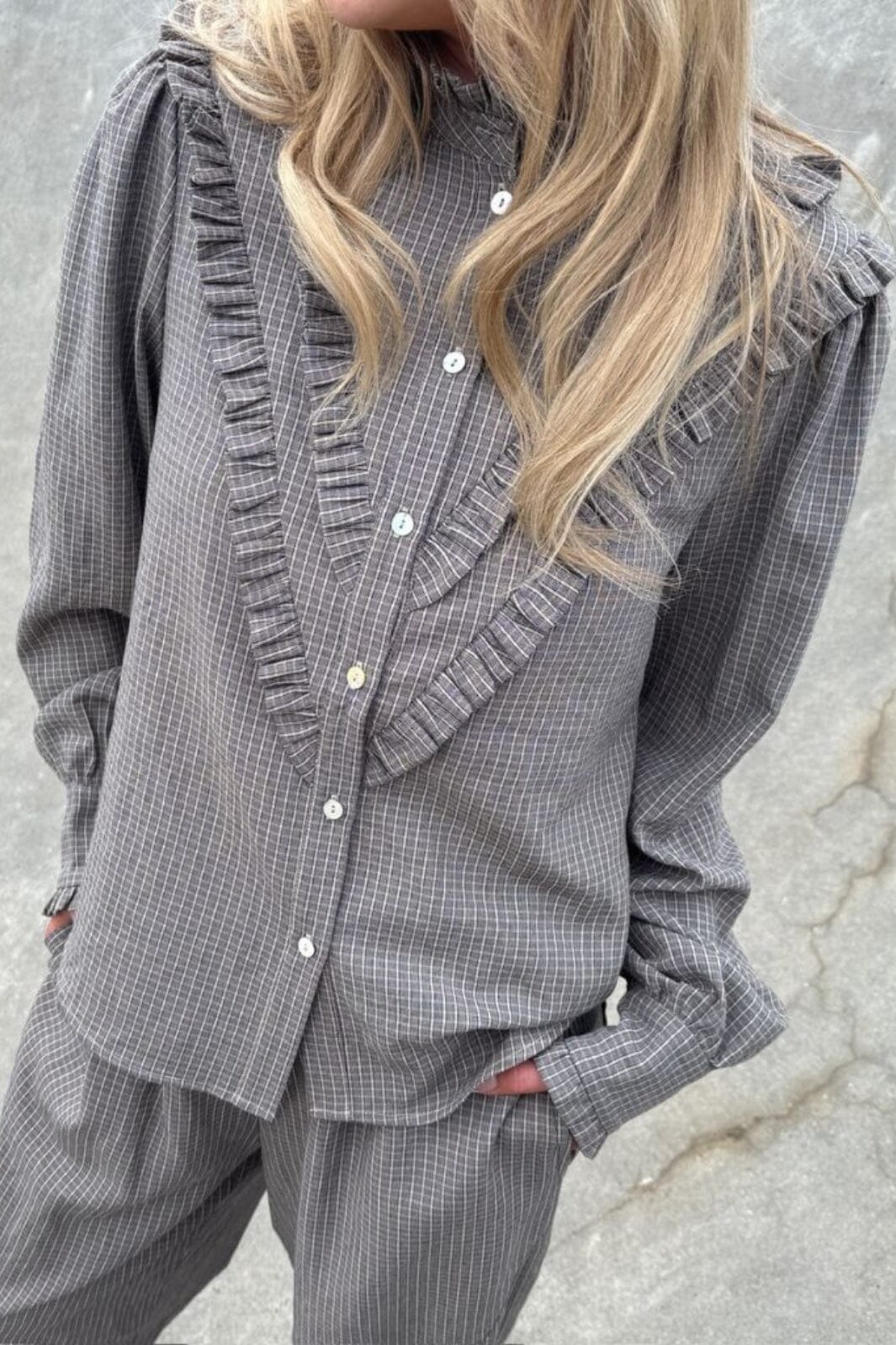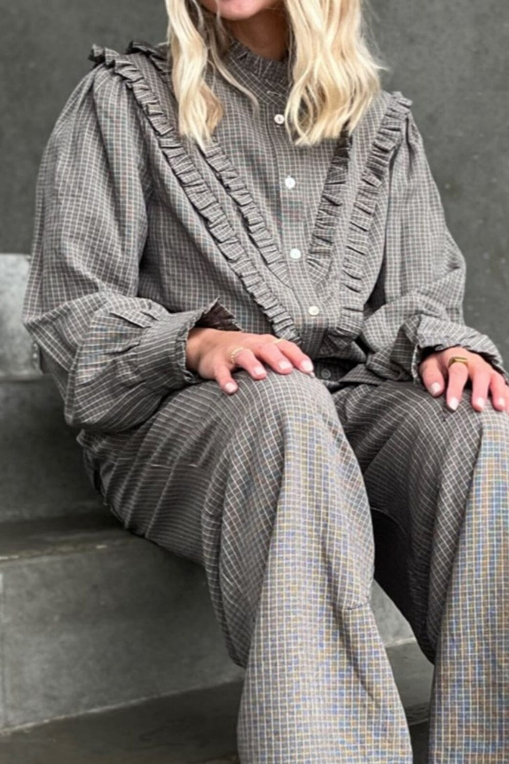 De Copenhagen Shoes collectie biedt expressieve kledingstukken die opvallen door hun detaillering. Van gouden accenten in tops tot subtiele strepen in broeken - elk item heeft karakter. De collectie mengt levendige kleuren zoals paars en goud met tijdloze tinten als zwart en marineblauw.