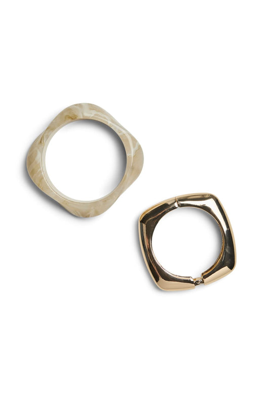 - Kies een opvallende armband als basis en voeg daar dunne armbandjes aan toe