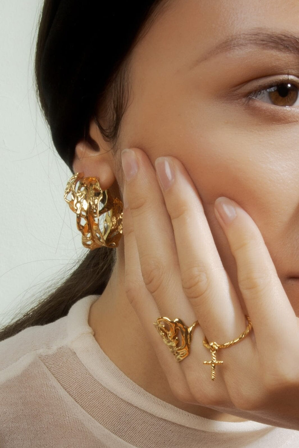 De vergulde sieraden van Jane Kønig geven elke outfit een warme glans. Van delicate vlindermotieven tot geometrische maanvormen; elk stuk heeft een verfijnde afwerking die zorgt voor een subtiele luxe uitstraling. De gouden tint komt mooi tot zijn recht in zowel kleine studs als grotere statementstukken.