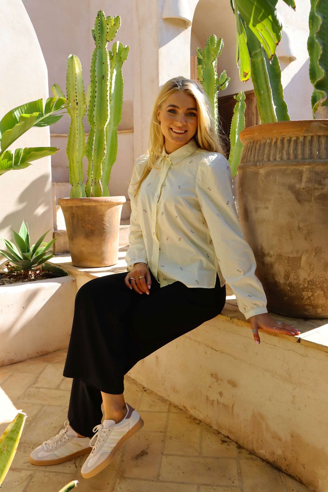 Liberté besteedt bijzondere aandacht aan verfijnde details die elk kledingstuk karakter geven. Blouses worden verrijkt met delicate kantaccenten, terwijl jurken worden verfraaid met strikdetails of subtiele prints. Deze elementen zorgen voor een vrouwelijke uitstraling zonder afbreuk te doen aan het draagcomfort.