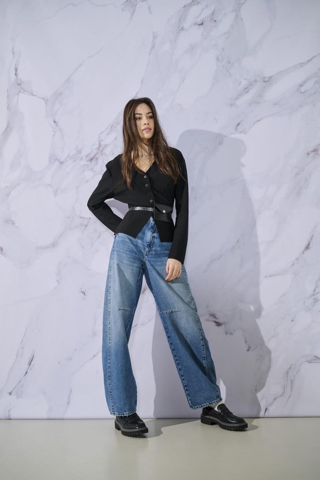 Zwarte denim laat zich uitstekend combineren met lichte en donkere tinten. De neutrale basis zorgt ervoor dat accessoires en bovenstukken extra goed tot hun recht komen.