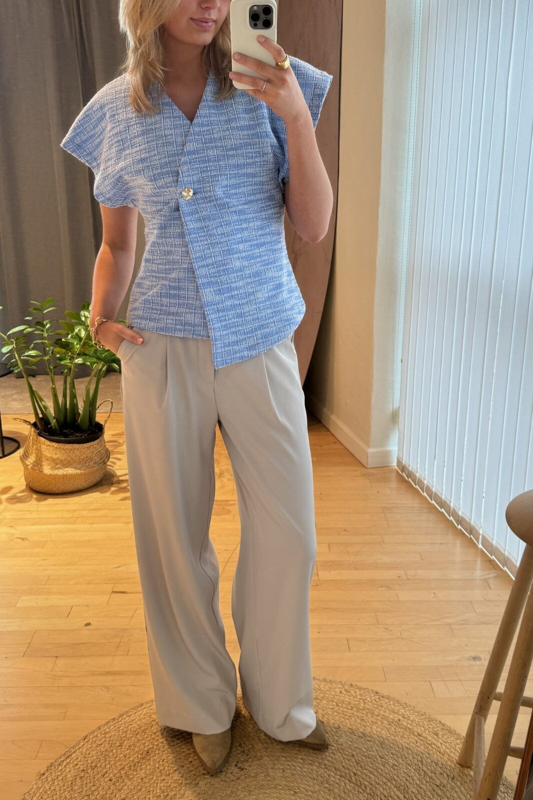 Het materiaal van een vest bepaalt hoe het draagt en valt. Zachte stoffen voelen prettig aan op de huid, terwijl stevigere materialen mooi hun vorm behouden. De stofkeuze heeft invloed op zowel het draagcomfort als de uitstraling van je outfit.