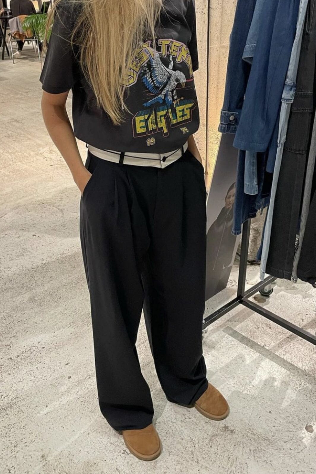 In de zomer draag je een wijde zwarte broek met luchtige tops in lichte kleuren. Tijdens koudere dagen combineer je de broek met warme truien in herfsttinten. Een zwarte broek met wijde pijpen is het hele jaar door te dragen en past zich aan elk seizoen aan.