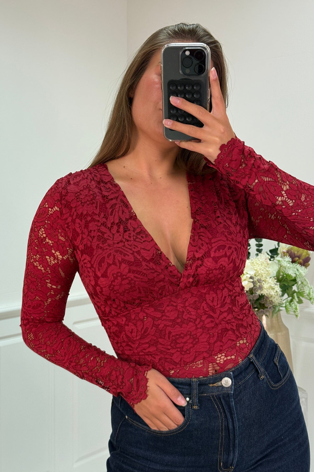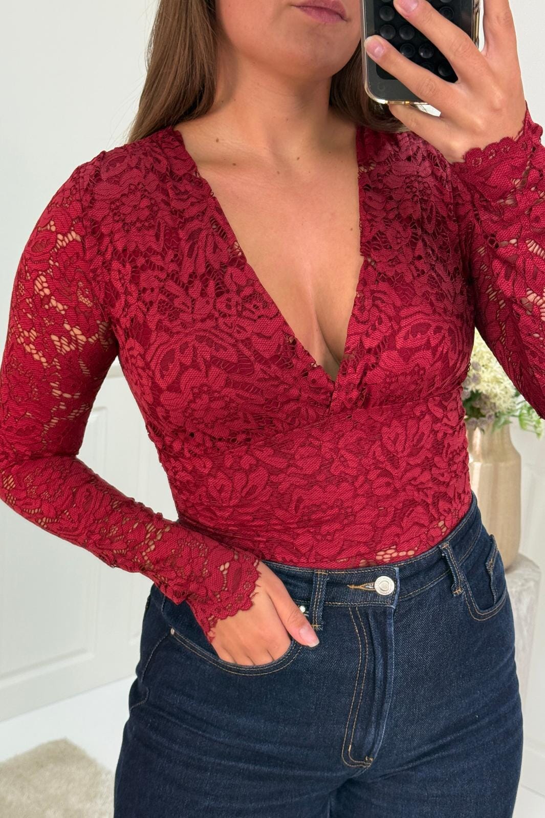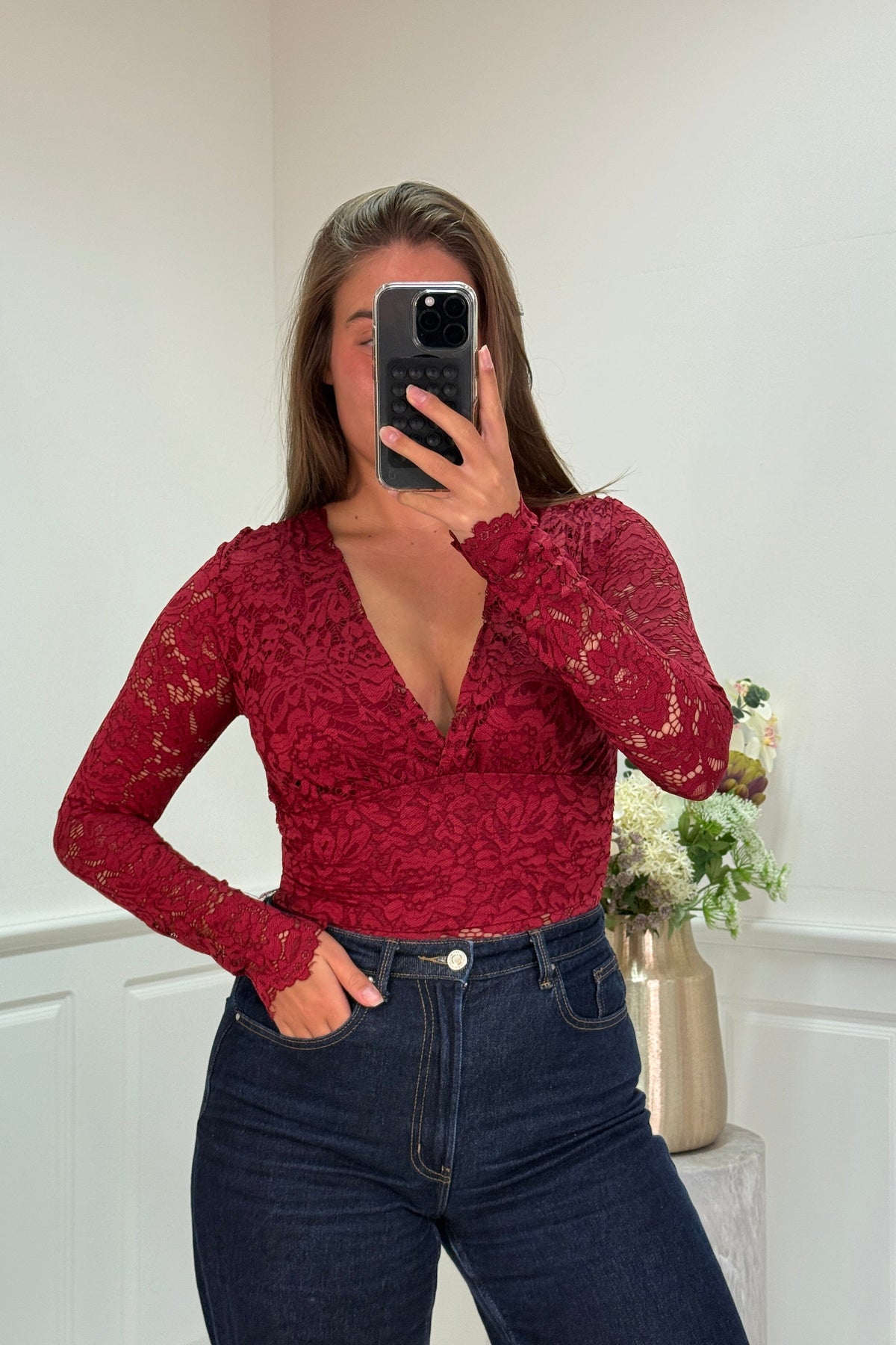 A-bee Anabella Bodystocking Kleur: Burgundy