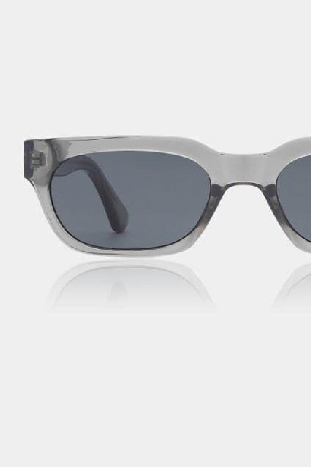 Zonnebrillen van A. Kjærbede in grijs transparant met rechthoekige vorm. De brillen zijn gemaakt van Tritan Renew met donkere lenzen en hebben een transparant montuur.