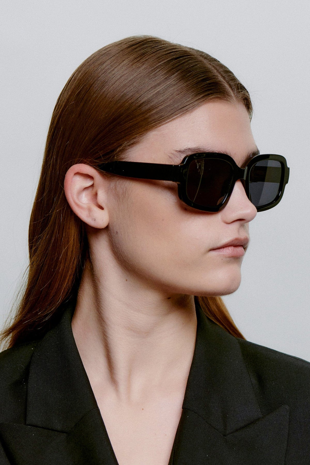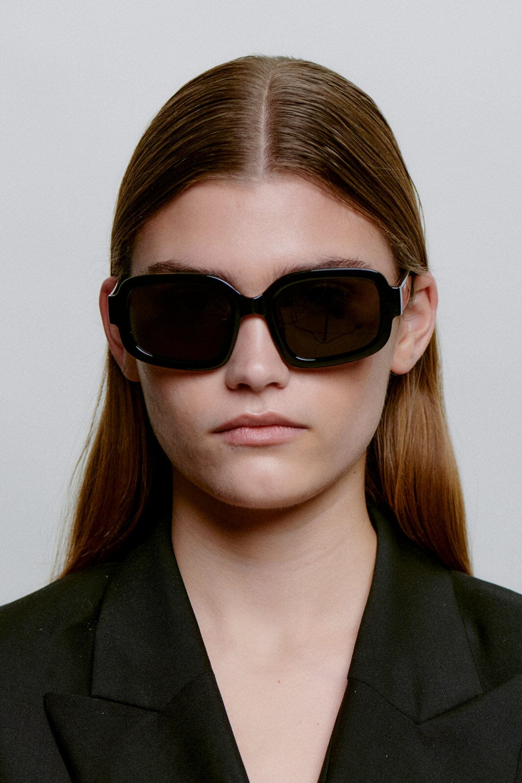 - Zwart montuur en donkere lenzen