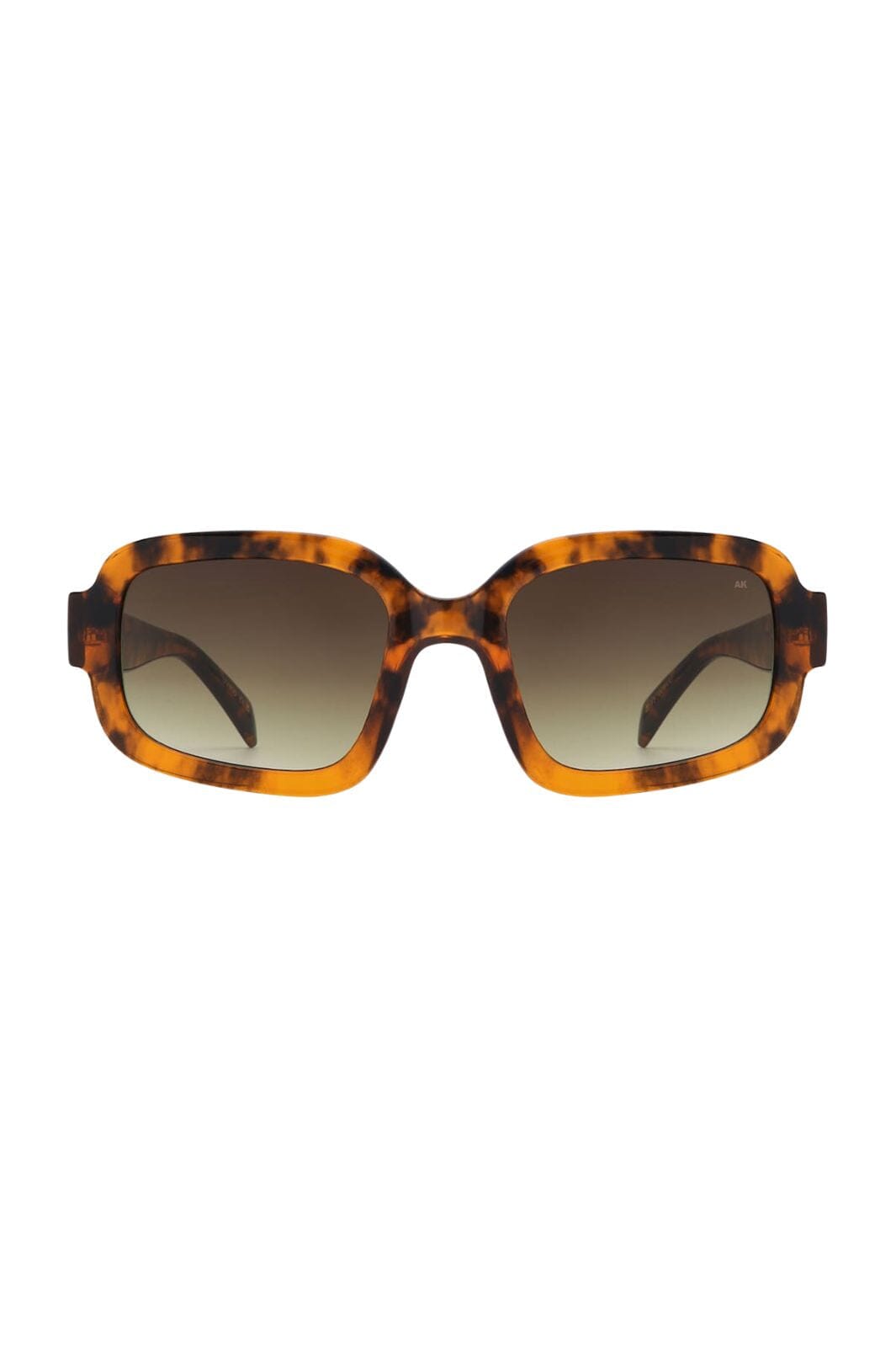 Zonnebrillen van A. Kjærbede met vierkant montuur in bruin Havana-kleur. Het montuur heeft een schildpadpatroon en getinte gradientlenzen met een stevige rand.