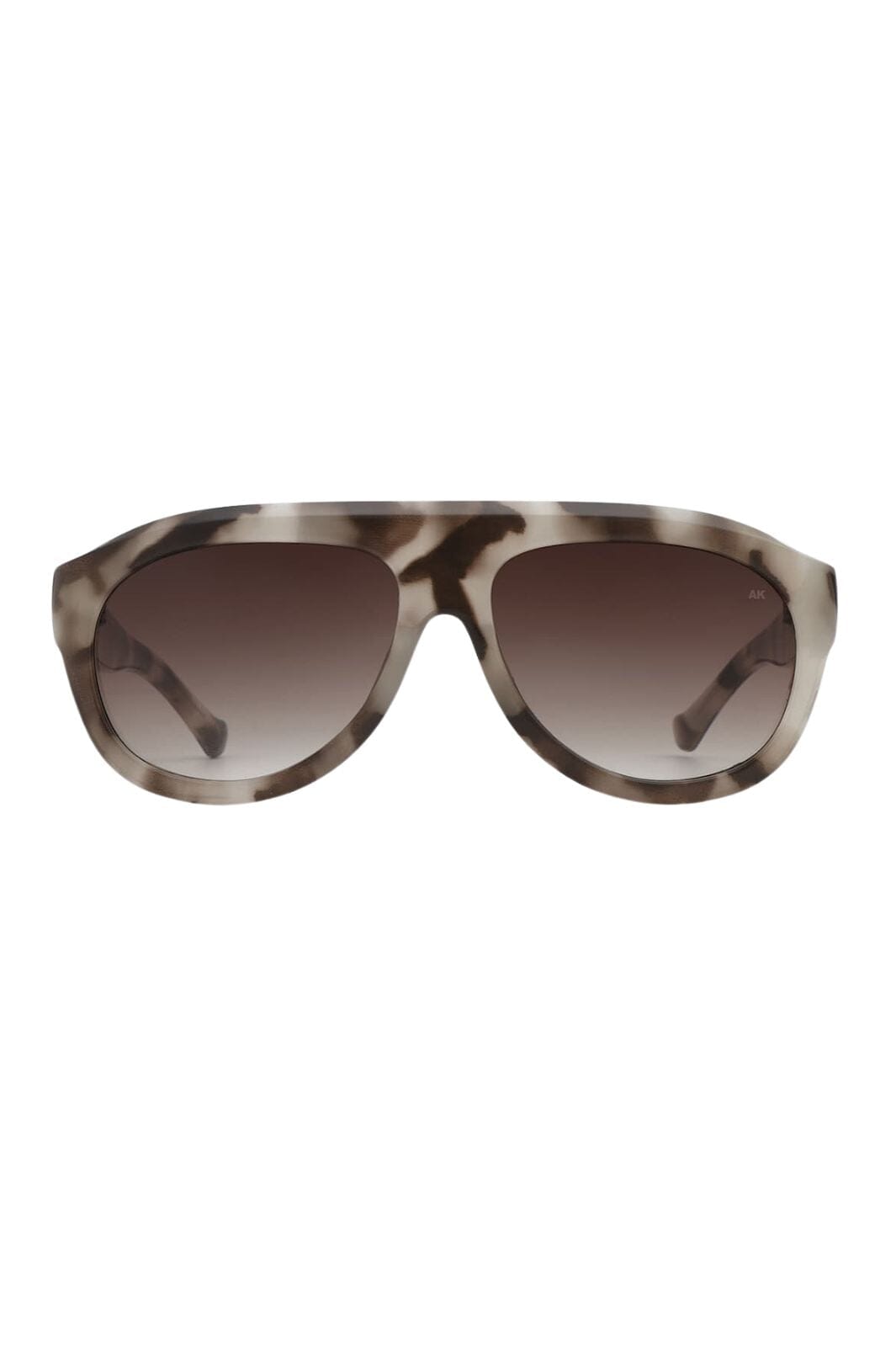 Zonnebrillen van A. Kjærbede met een gemêleerd montuur in bruine en grijze tinten. Het montuur heeft een aviator-vorm met gradientlenzen en een kenmerkend Cookie Dough-kleurontwerp.