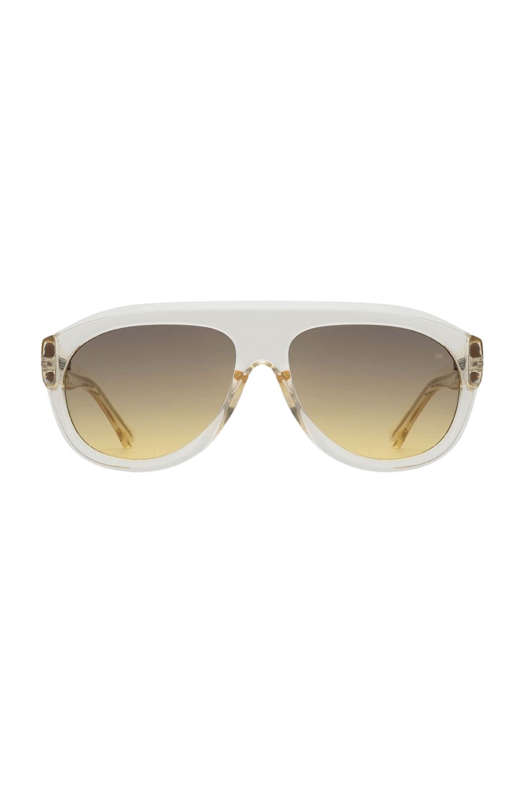 Zonnebrillen van A. Kjærbede in transparant ecru. Het aviator-ontwerp heeft een sculpturale rand met graduele lenzen die bovenaan donkerder en onderaan lichter zijn.