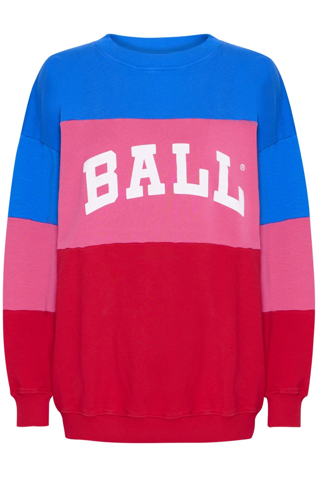 Trui van Ball met kleurblokontwerp in blauw, roze en rood. Het heeft een geborduurd BALL-logo op de voorkant en een ronde hals met ribbelrand.