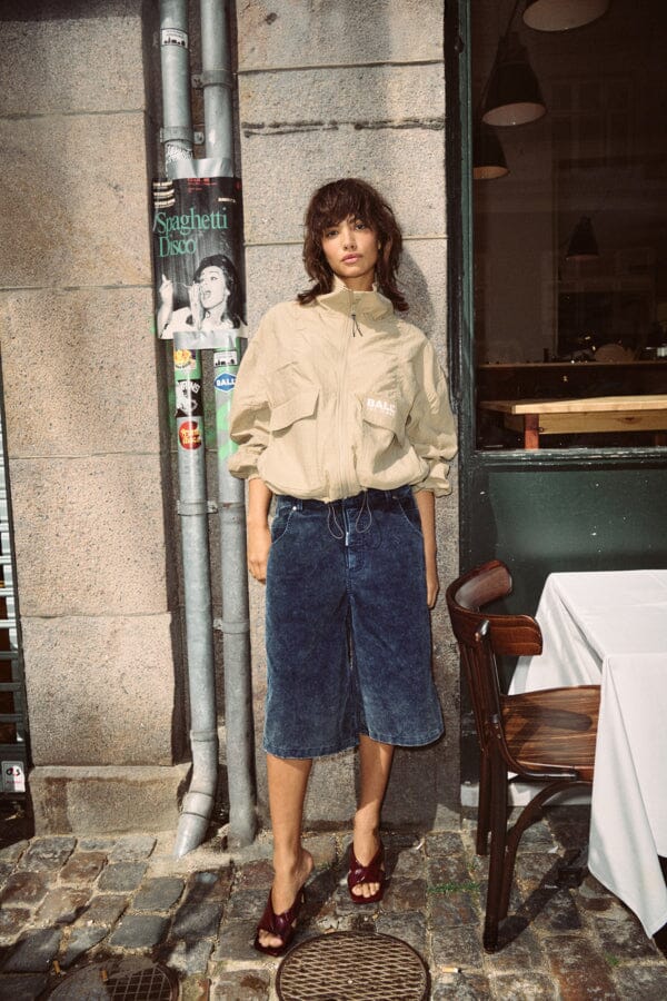 Een beige jas van Ball, gemaakt van 100% polyamide. De jas heeft een effen kleur en decoratieve stiksels.