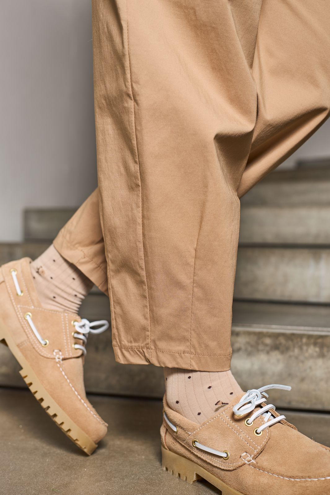 Beige broek van Black Colour met een losse pasvorm. De broek valt tot halverwege de kuit en heeft riemlussen.