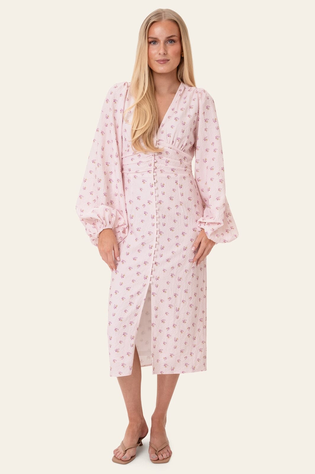 Lange jurk van BYIC in roze met bloemenprint. De jurk heeft een lange lengte en een slim fit-pasvorm.
