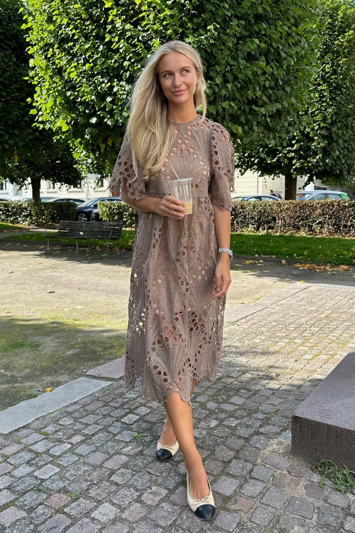 BYIC Melia Midi Lace Dress Kleur: Mocca