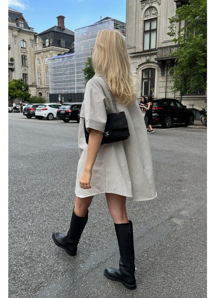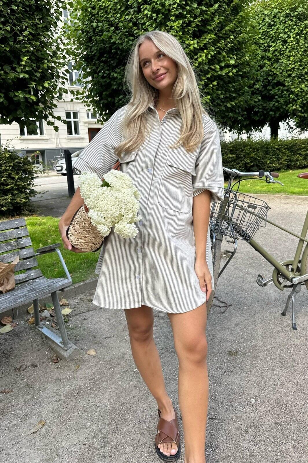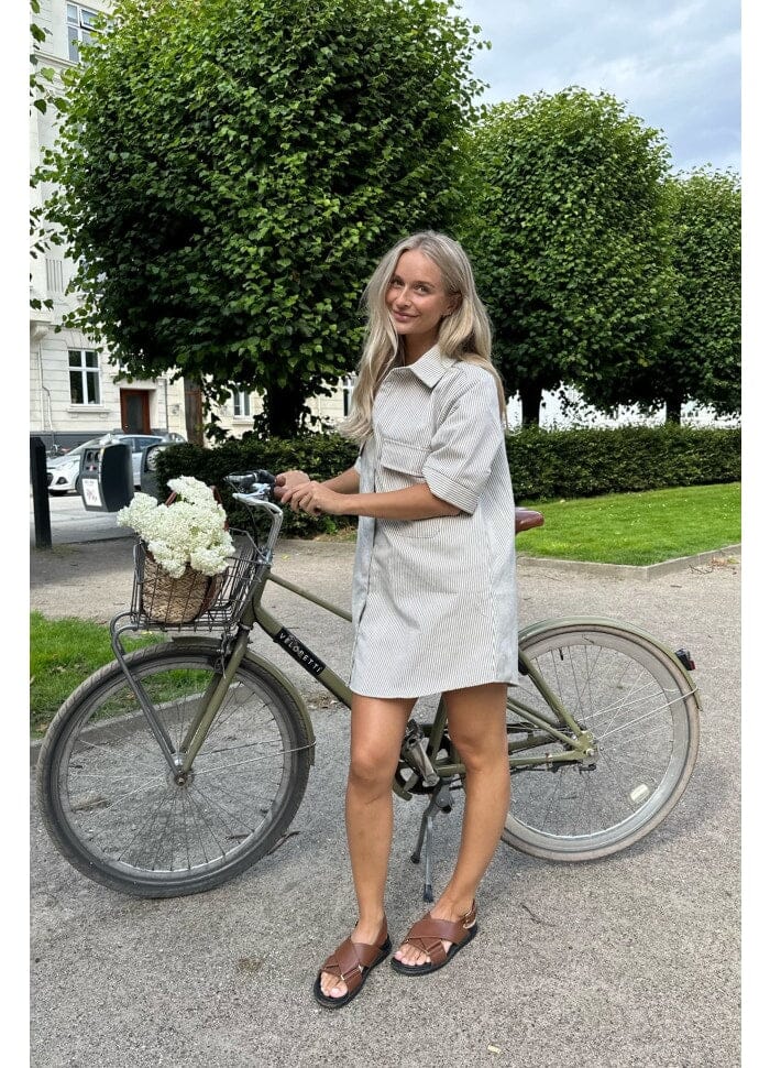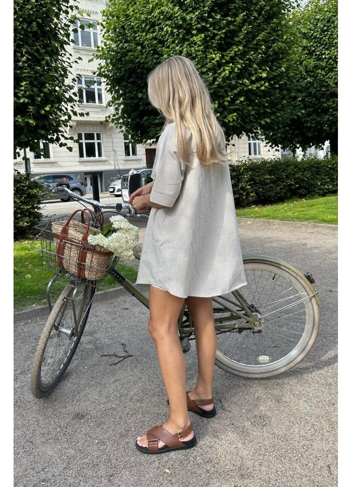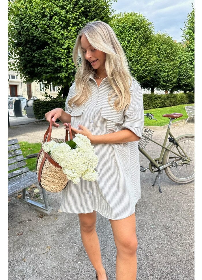 Forudbestilling - BYIC - Selda Shirt Dress - Dark Beige Woven Stripe Kjoler