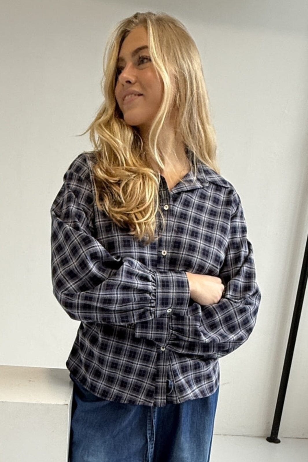 Geruit overhemd van Continue in donkerblauwe en blauwe tinten. Het overhemd is gemaakt van 100% katoen en heeft een klassiek ruitpatroon met knoopsluiting.