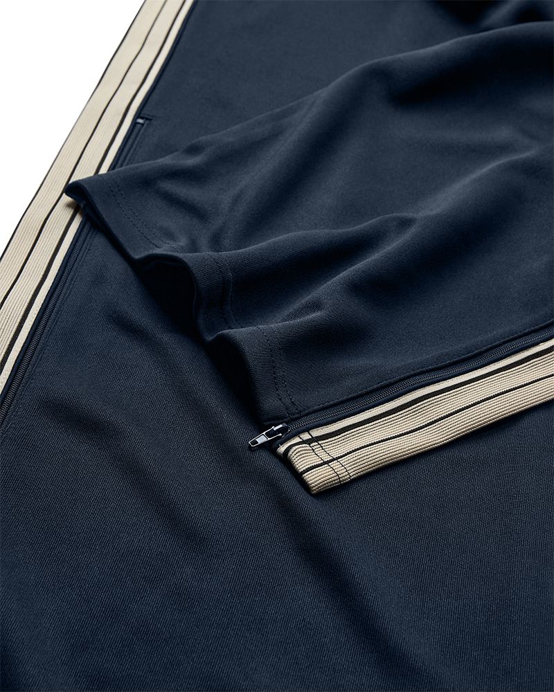 Sweatpants van Copenhagen Muse in een donkerblauwe kleur. De broek heeft strepen langs de zijkanten en een hoge taille met elastiek en trekkoord.