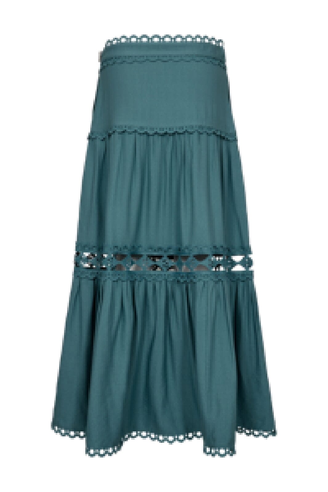 Een rok van Copenhagen Muse in een arctische kleurtoon. Het heeft een gelaagd ontwerp met kant en ruches die een vrouwelijke uitstraling creëren.