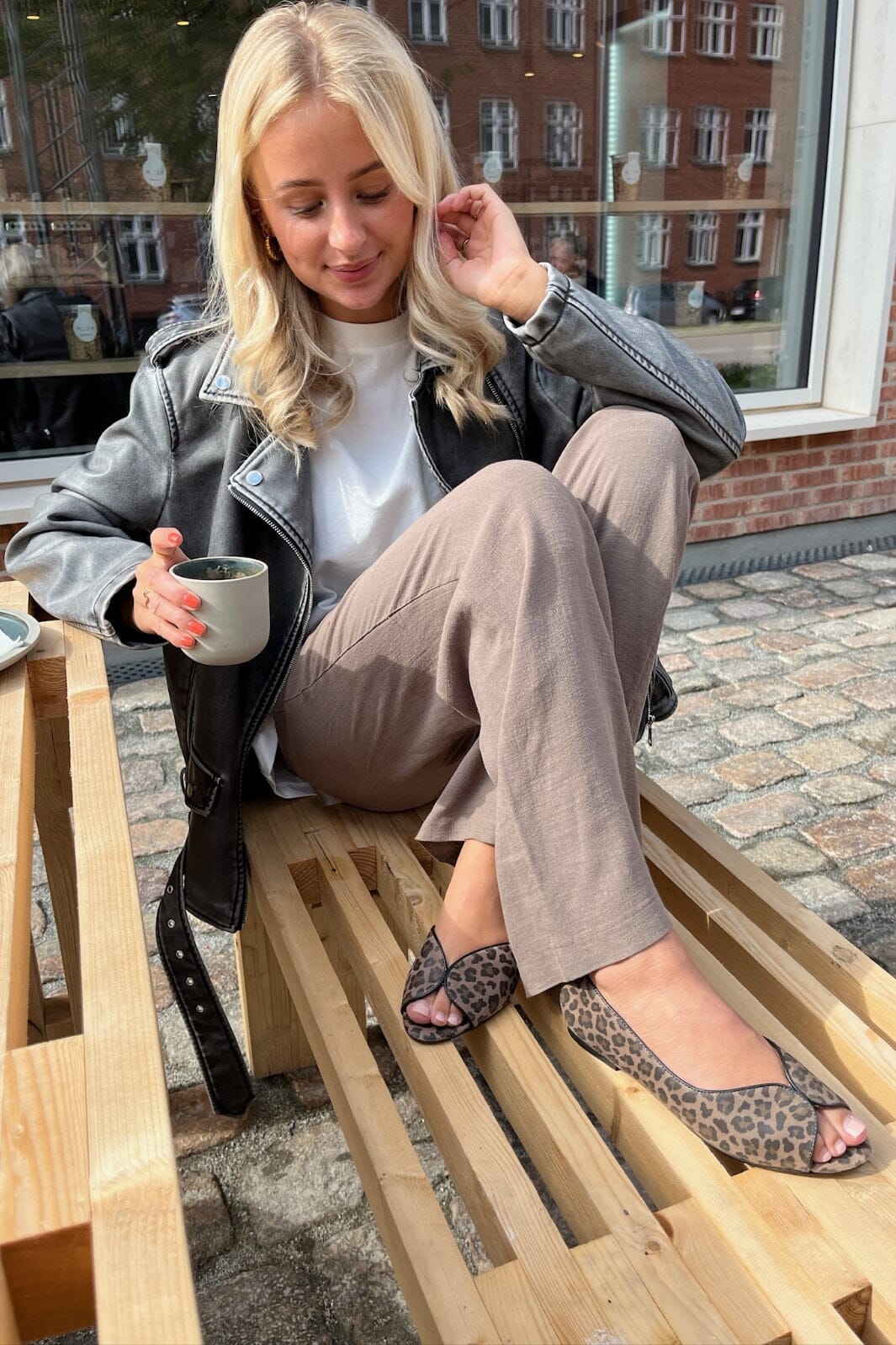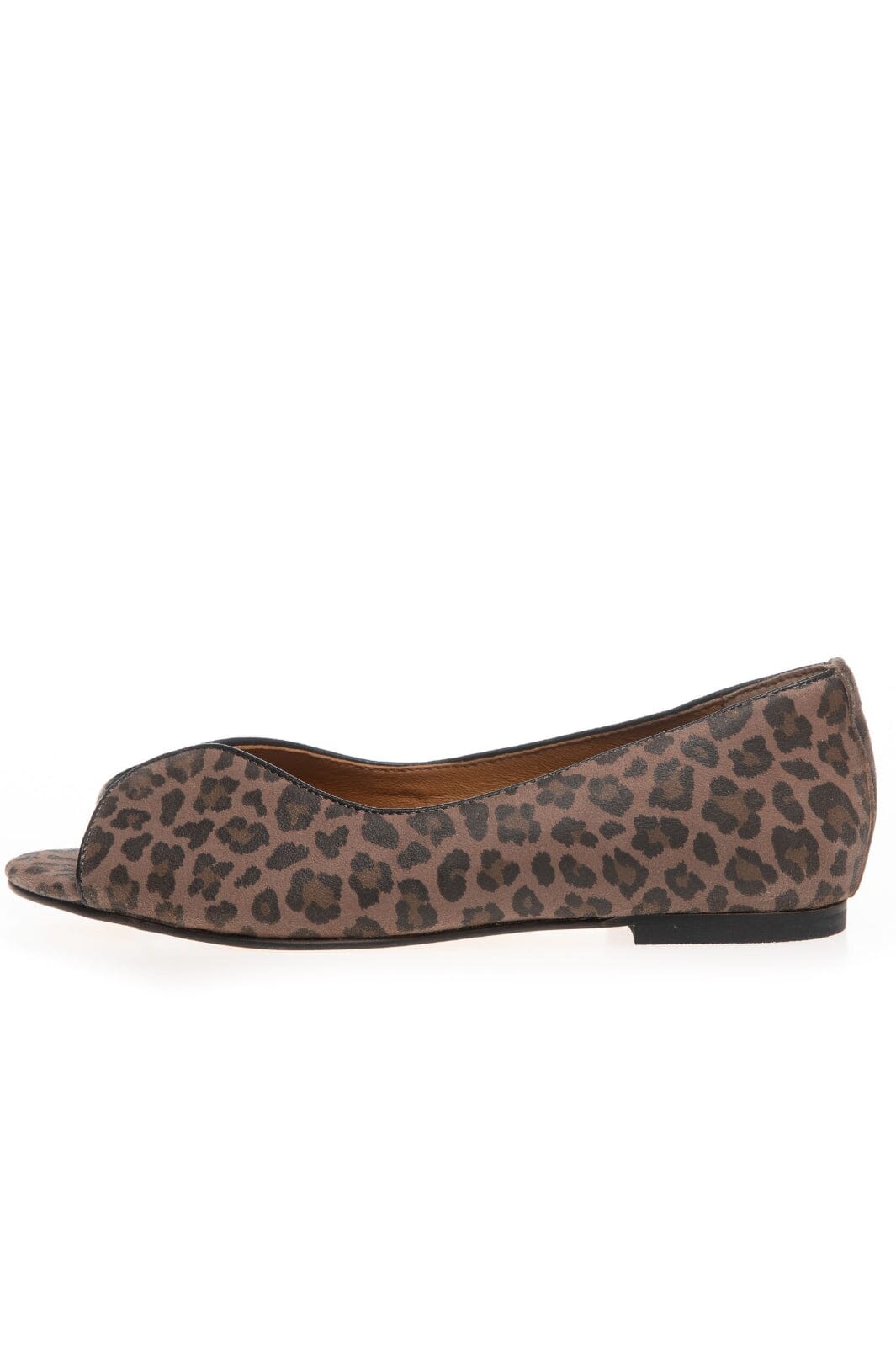 Open schoenen van Copenhagen Shoes met luipaardprint. De schoenen zijn gemaakt van leer en hebben zachte zolen met latexschuim, wat zorgt voor goede schokabsorptie voor dagelijks gebruik.
