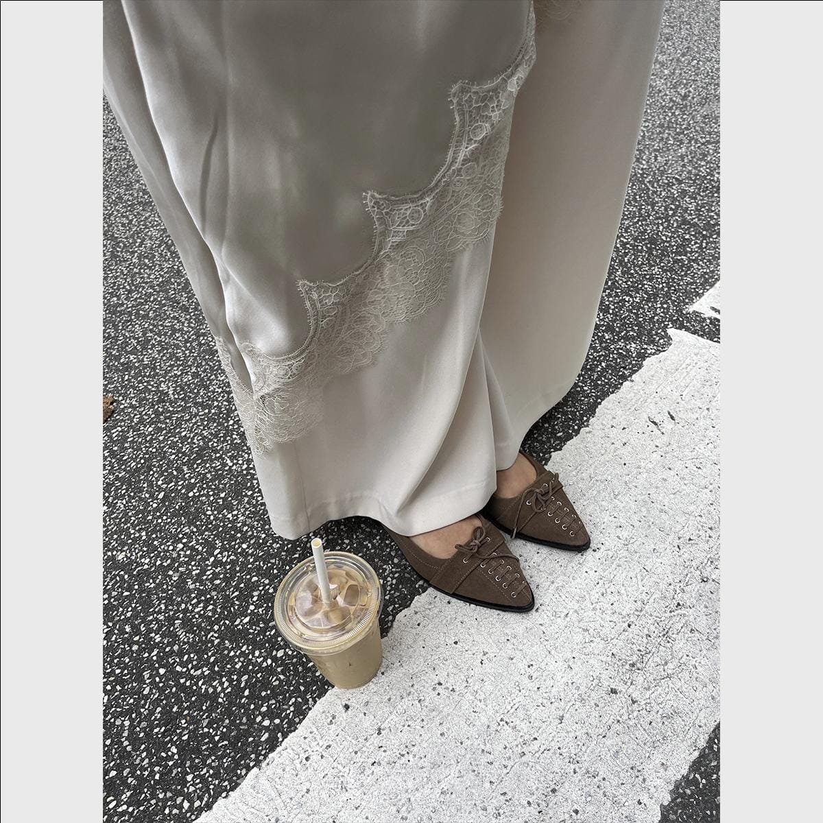 Spitse schoenen van Copenhagen Shoes in een lichtbruine ledertint. De schoenen hebben vetersdetails aan de voorkant en een lage hak.