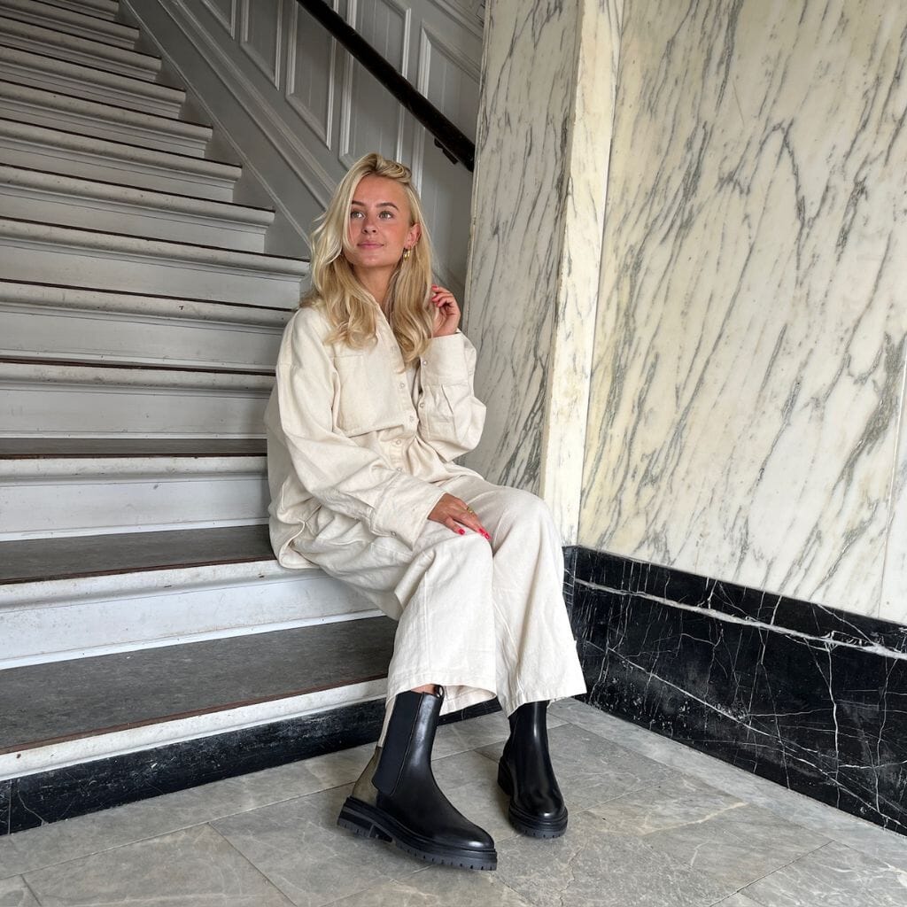 Støvlen er almindelig i str. - passer bedst til en almindelig eller bred fod. Støvlen er rummelig.