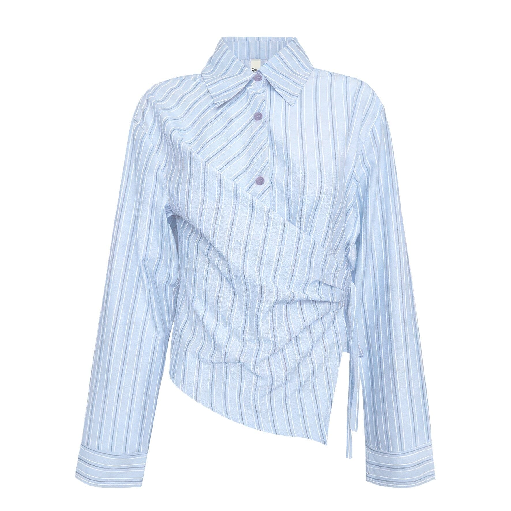 Gestreept overhemd van Dear Molly in lichtblauw en wit. Het overhemd heeft een strikdetail in de taille en is gemaakt van geweven materiaal.
