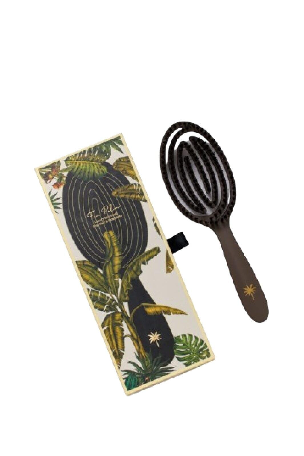Haarborstel van Fan Palm in warm grijs. Een borstel, speciaal ontworpen voor fijn haar en extensions, met een combinatie van wilde zwijnenhaar en nylonborstels voor zorgvuldige verzorging.