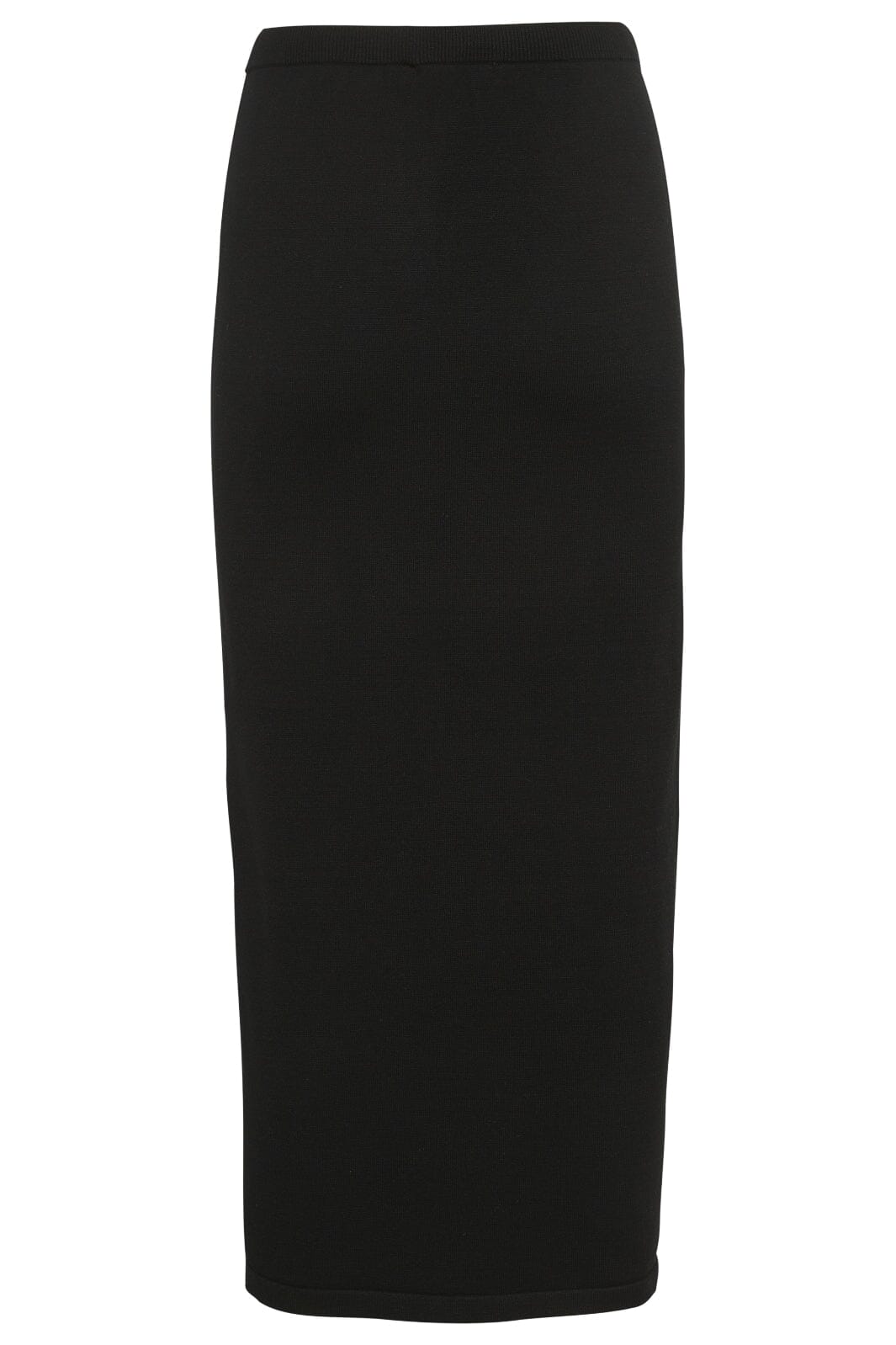 Zwarte lange rok van Gestuz met vetersluiting in de taille. De enkellange rok heeft een eenvoudig ontwerp zonder zichtbare zakken en een rechte silhoët.