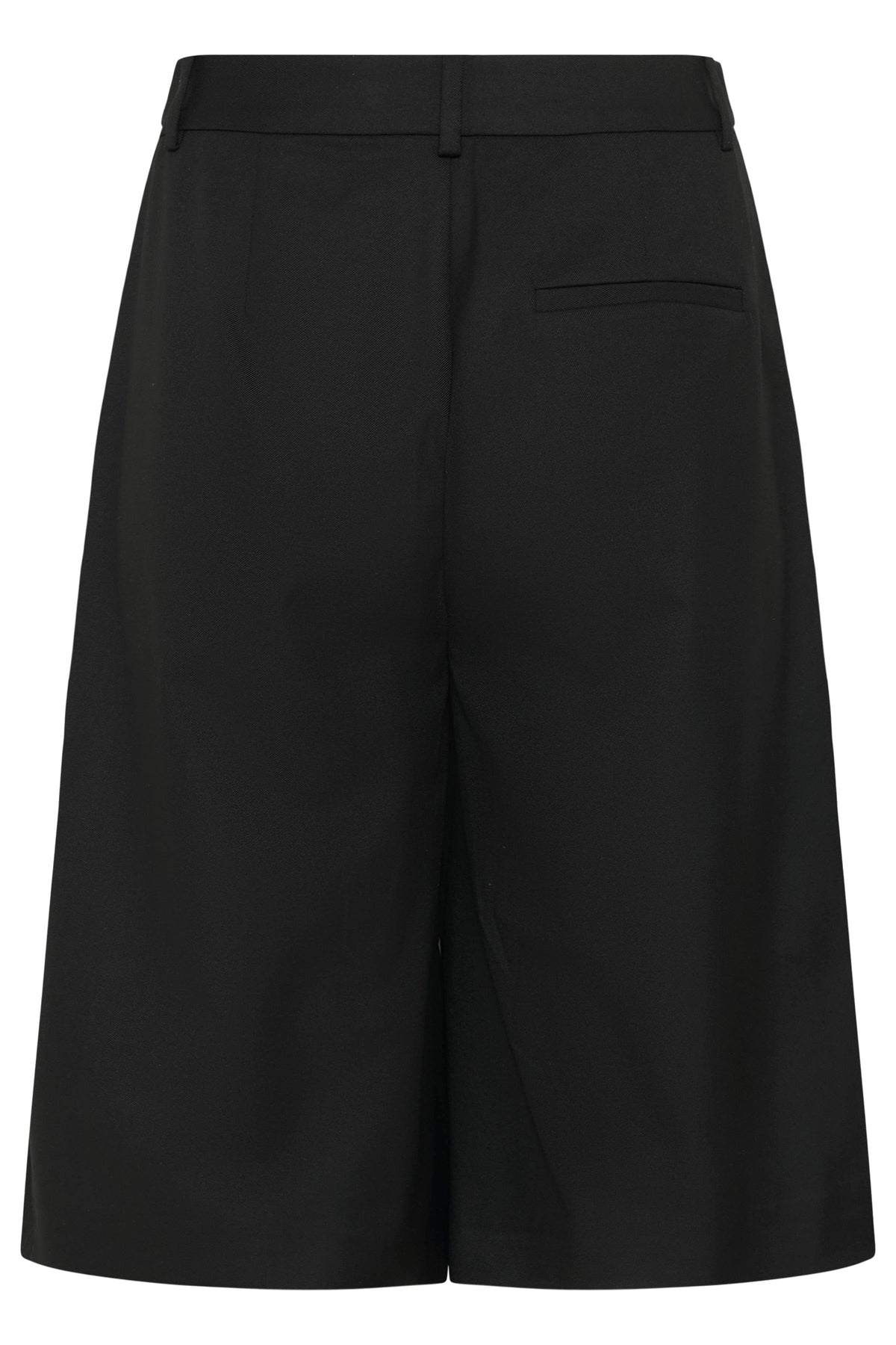 Zwarte wijde shorts van Gestuz, gemaakt van 68% gerecycled polyester, 30% viscose en 2% elastaan. De shorts hebben wijde pijpen en een hoge taille.