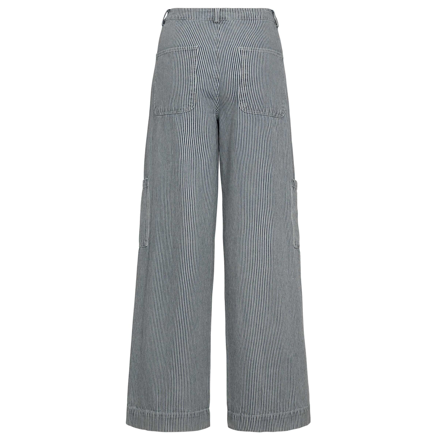 Gestreepte broek van Gossia in offwhite en blauw. De broek heeft een losse pasvorm en grote zakken op de dijen.