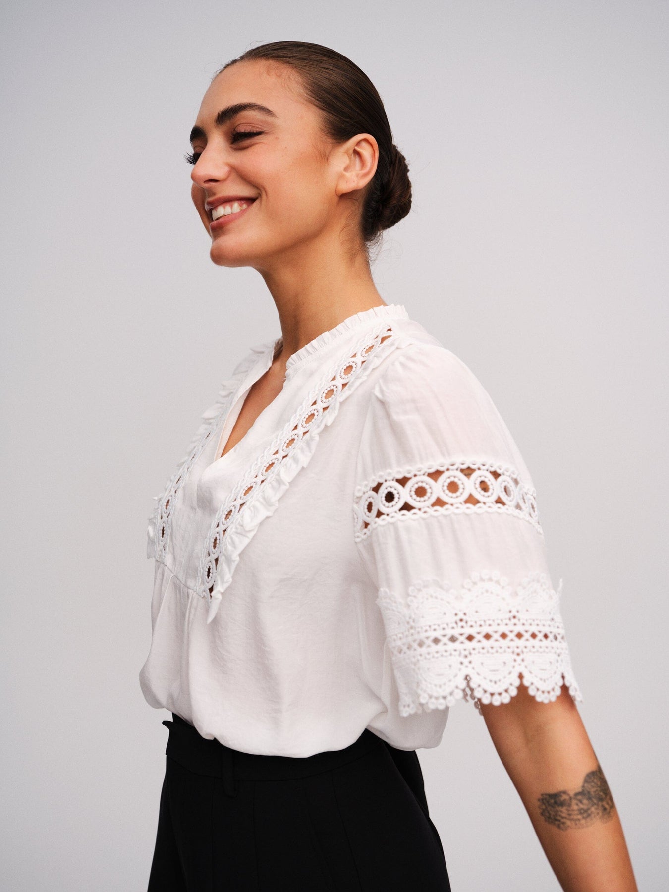 - Korte mouwen met kantpatroon