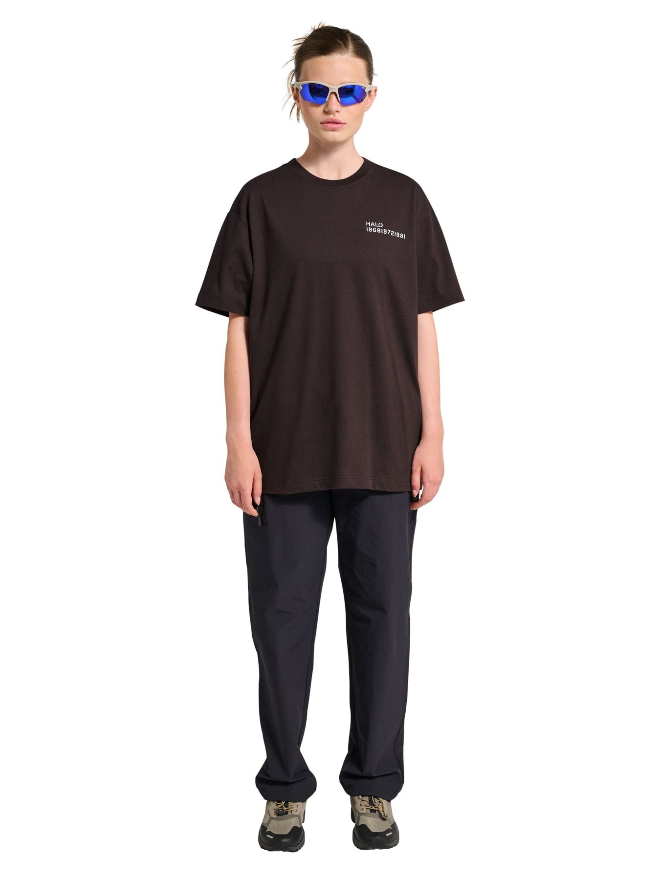 Donkerbruin T-shirt van HALO, gemaakt van 100% biologische katoen. Het T-shirt heeft korte mouwen en een losse pasvorm met F.U.T.-tekst op de achterkant.