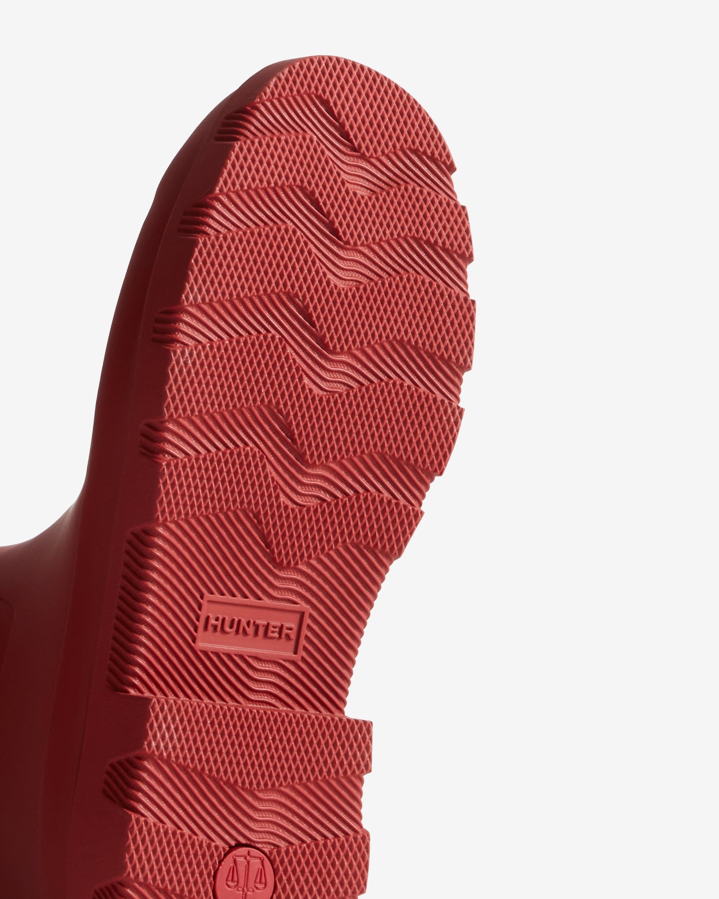Korte laars van Hunter in een militairrode tint. De laars is gemaakt van 100% rubber en heeft het Hunter-logo aan de voorkant.