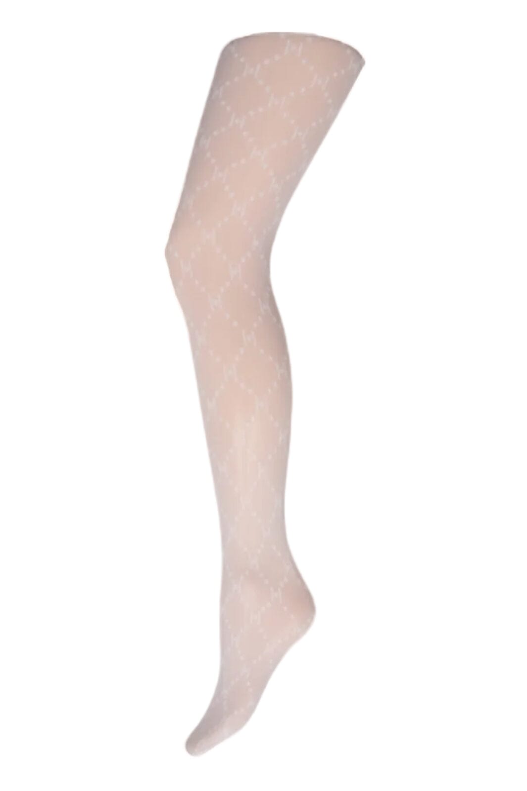 Witte panty van Hype The Detail met een herhaald diamantpatroon. De panty heeft een transparante kwaliteit van 25 denier.
