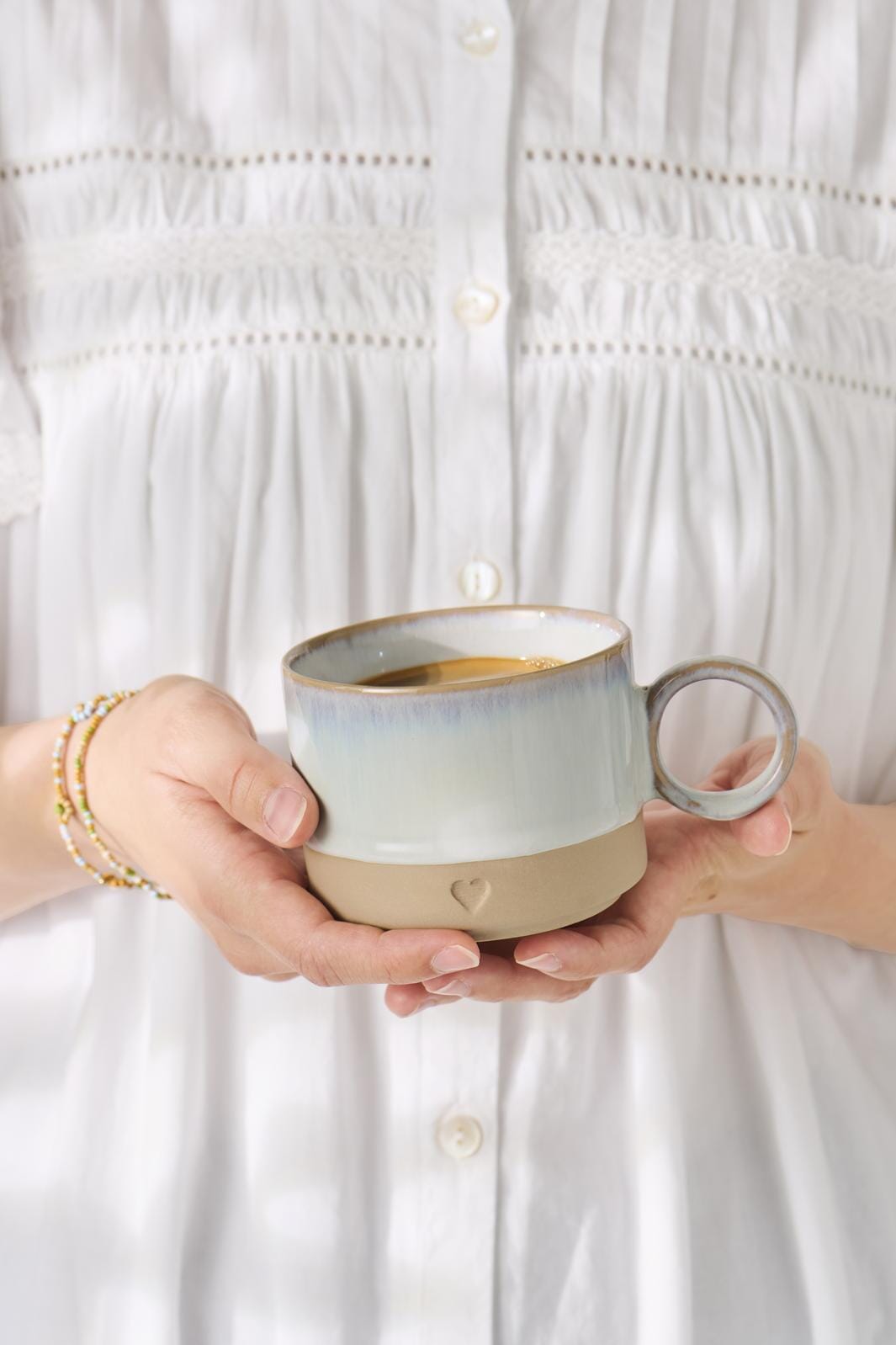 Ib Laursen Krus m/hank Heart mat brunt ler m/lyseblå kant 290 ml Kleur: Stentøj