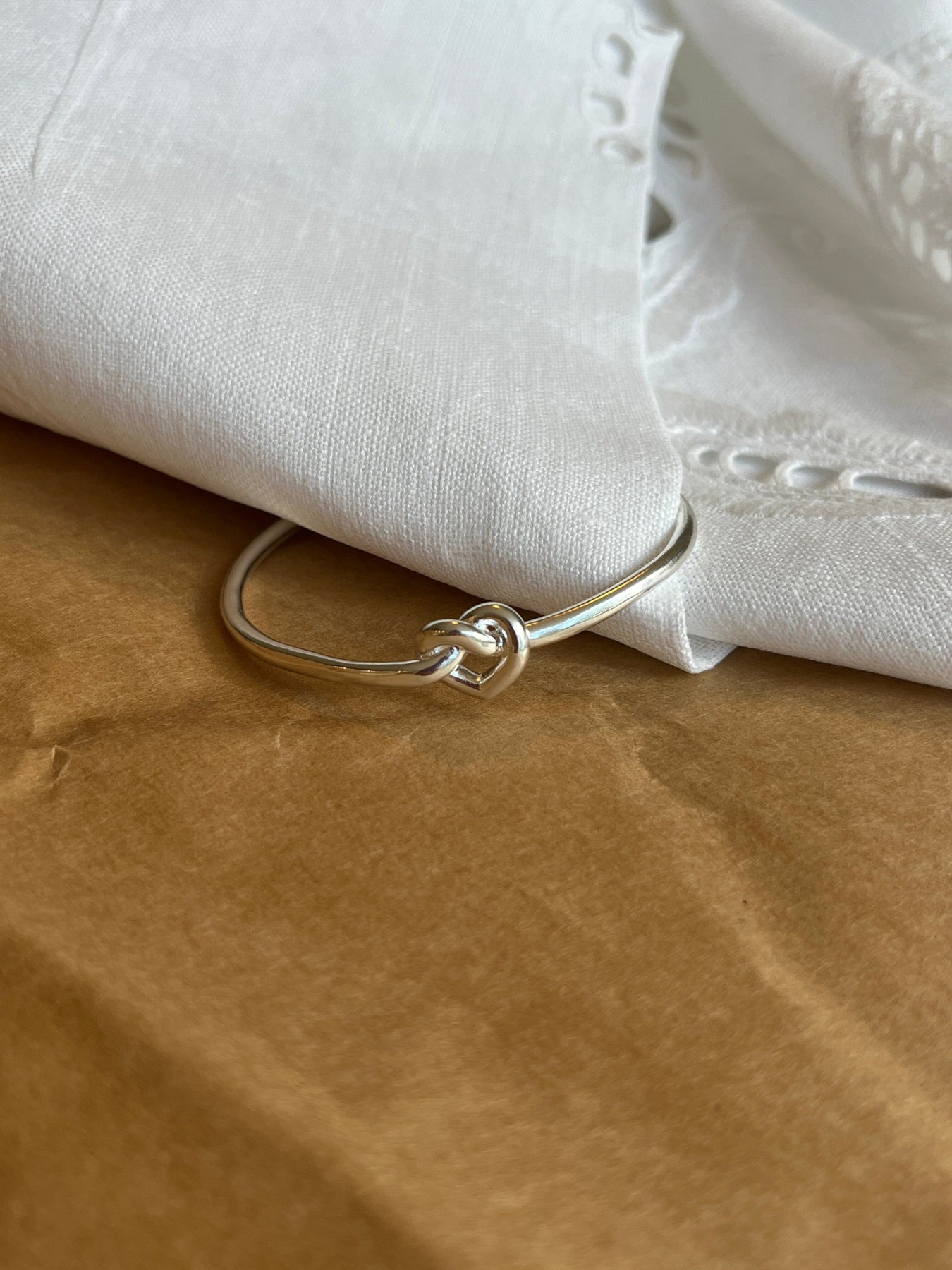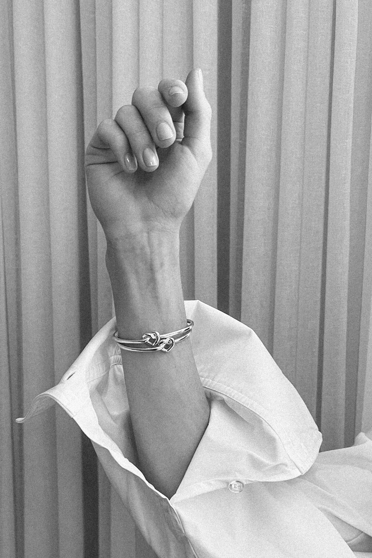 Armband van Jane Kønig met een gebonden hart als centraal detail. Het armband is gemaakt van sterlingzilver en heeft een glad, glanzend oppervlak met een laag van 18-karaats goud.
