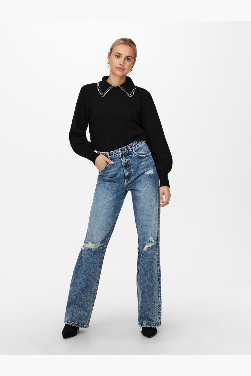 JDY JDYaubray Life L/S Pearl Pullover Knt Kleur: 3818554 Black W White Pearl Collar