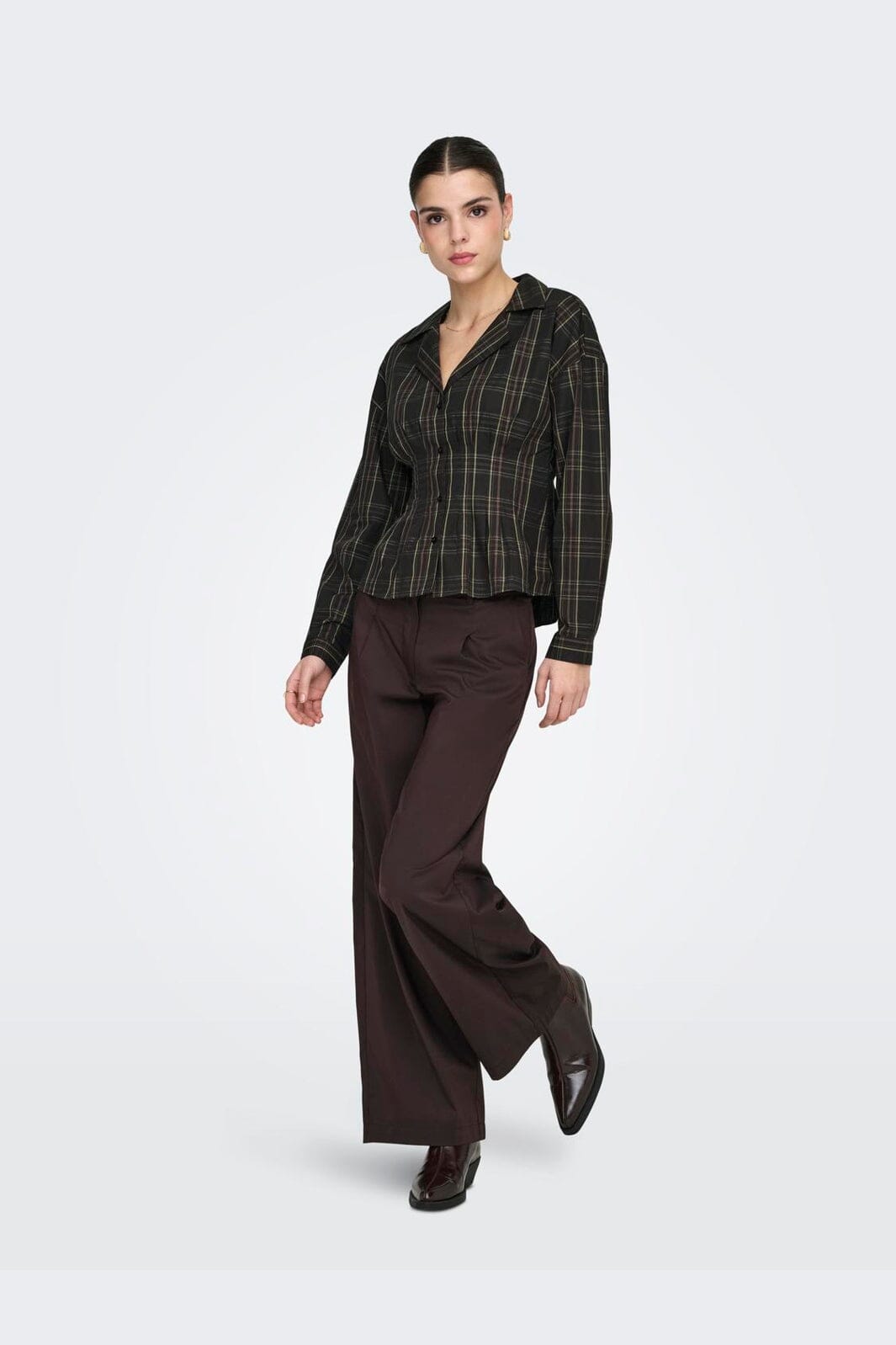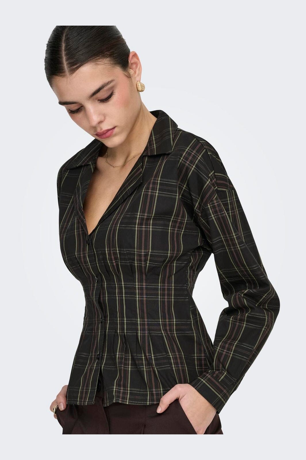 JDY Jdybetty Life L/S Fitted Shirt Kleur: 5083303 Slate Black Green&Red