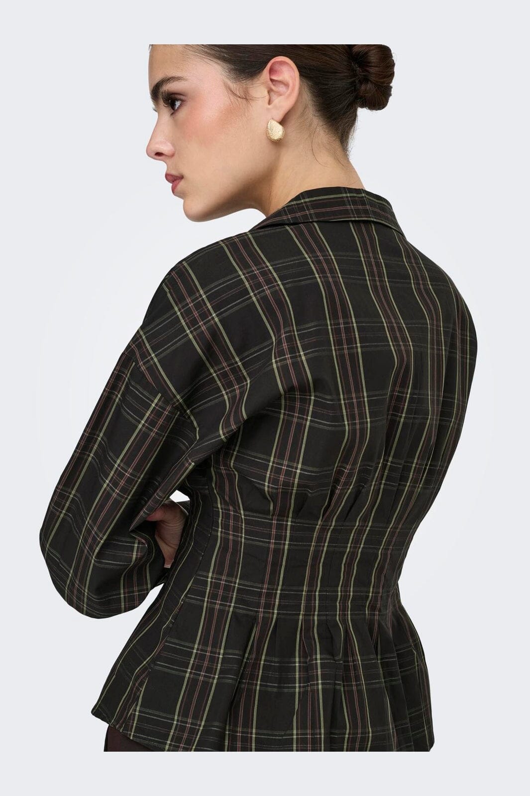 Geruit overhemd van JDY in zwart met groene en rode ruiten. Het overhemd is gemaakt van biologisch katoen en heeft een getailleerde pasvorm.