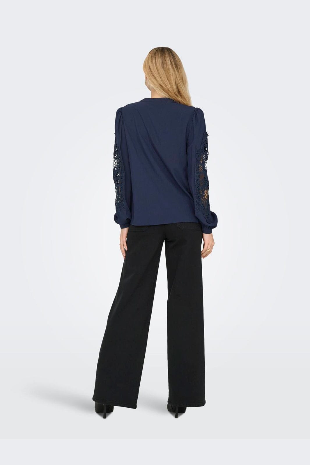 Donkerblouse van JDY, gemaakt van 70% viscose en 30% nylon. De blouse heeft een klassieke overhemdkraag en lange mouwen met kanten details op de mouwen. Regular fit zorgt voor een comfortabele pasvorm.