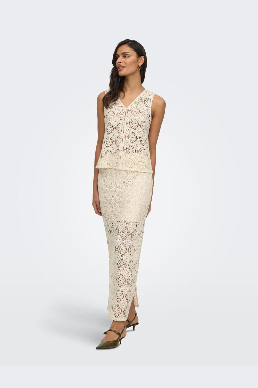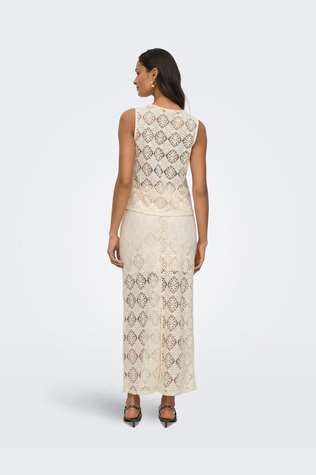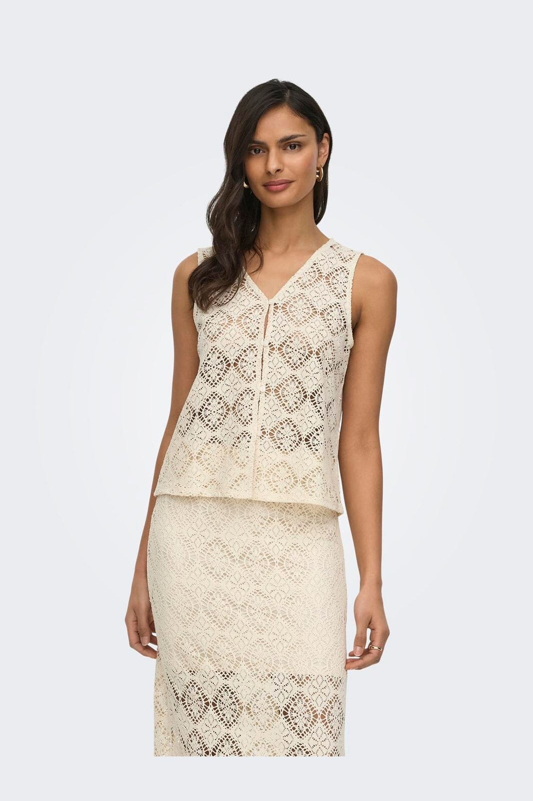 Mouwloze top van JDY in een lichte crèmekleur met kantachtig patroon. De regular fit-pasvorm zorgt voor een ontspannen silhouet voor alledag.