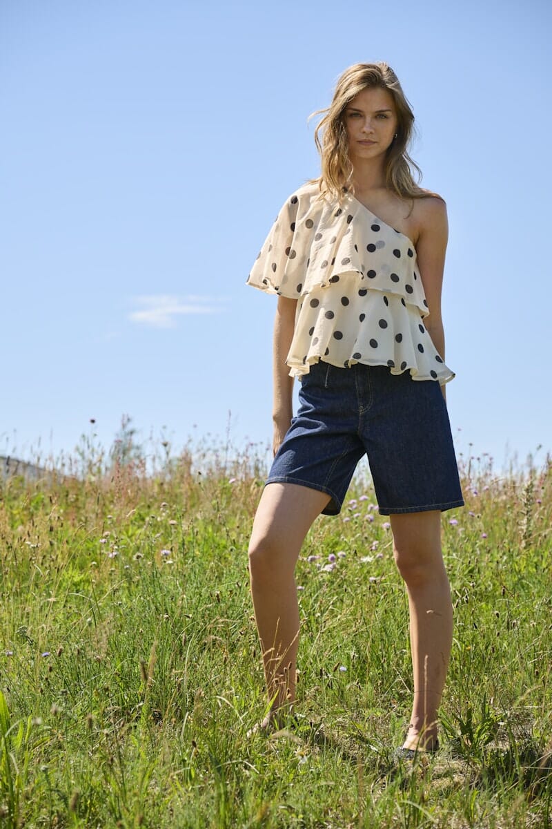 JDY Jdyfay Life One-Shoulder Top Kleur: 4990719 Pristine Black Dot