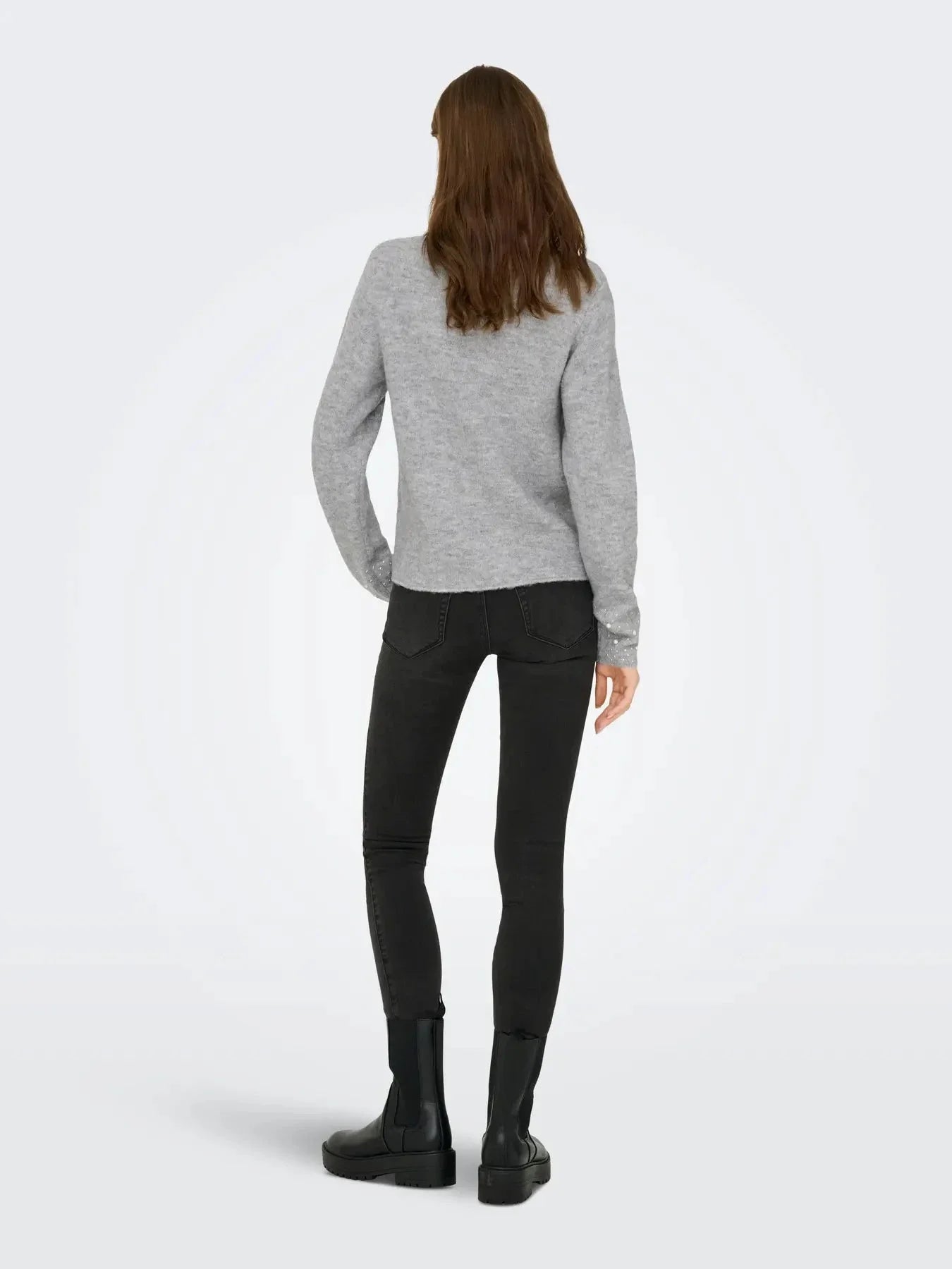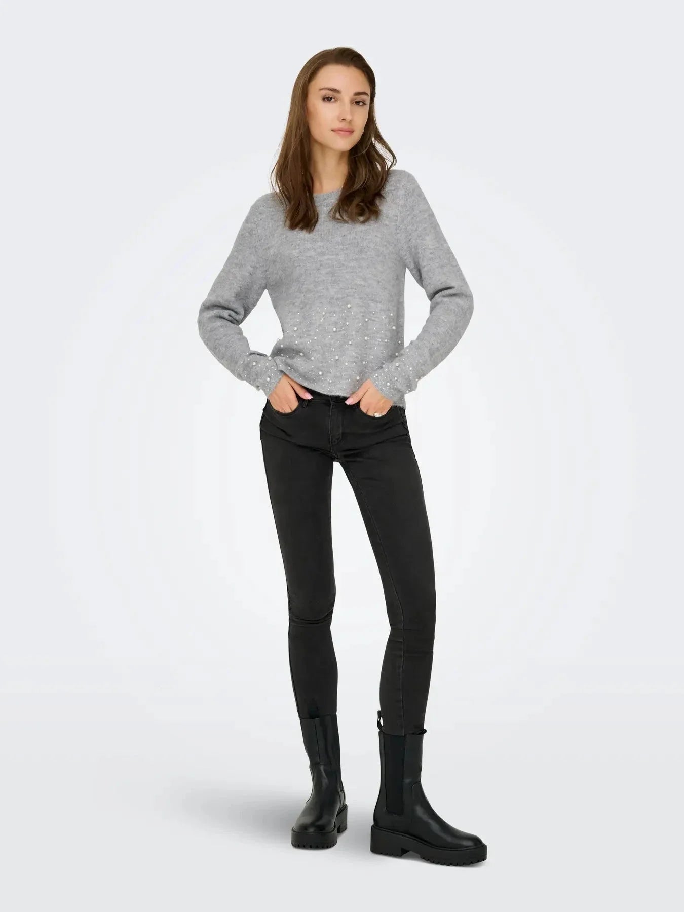 JDY Jdypearl L/S O-Neck Pearl Pullover Knt Kleur: 4815065 Light Grey Melange White Pearls