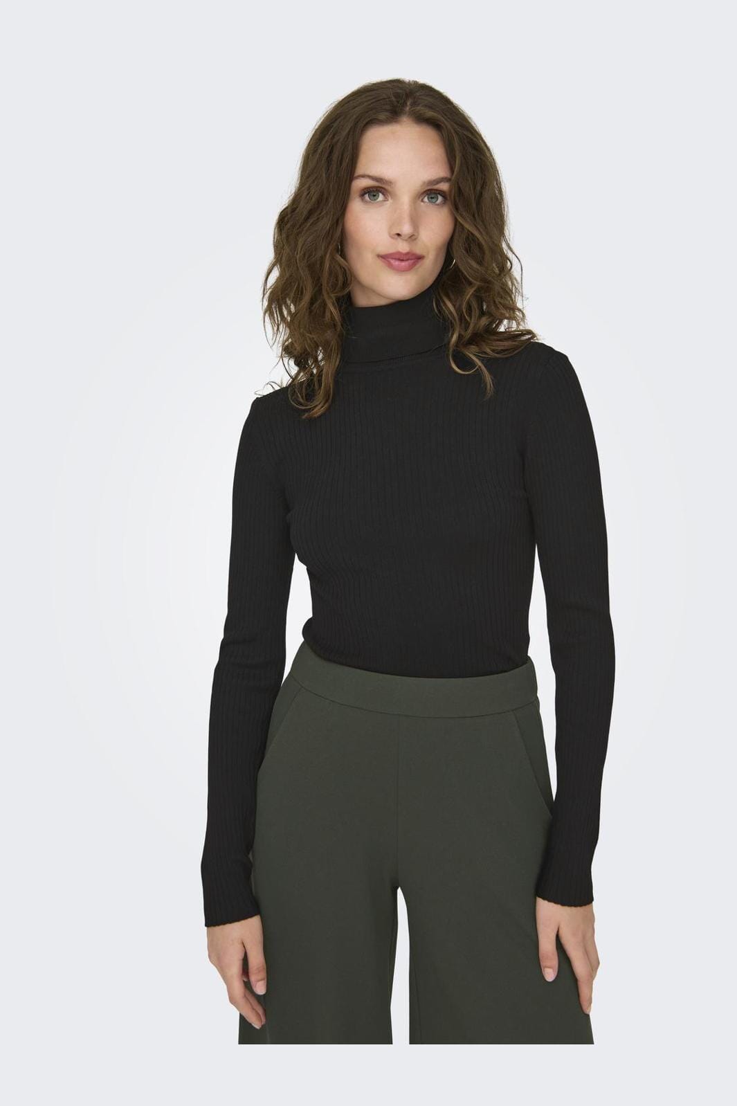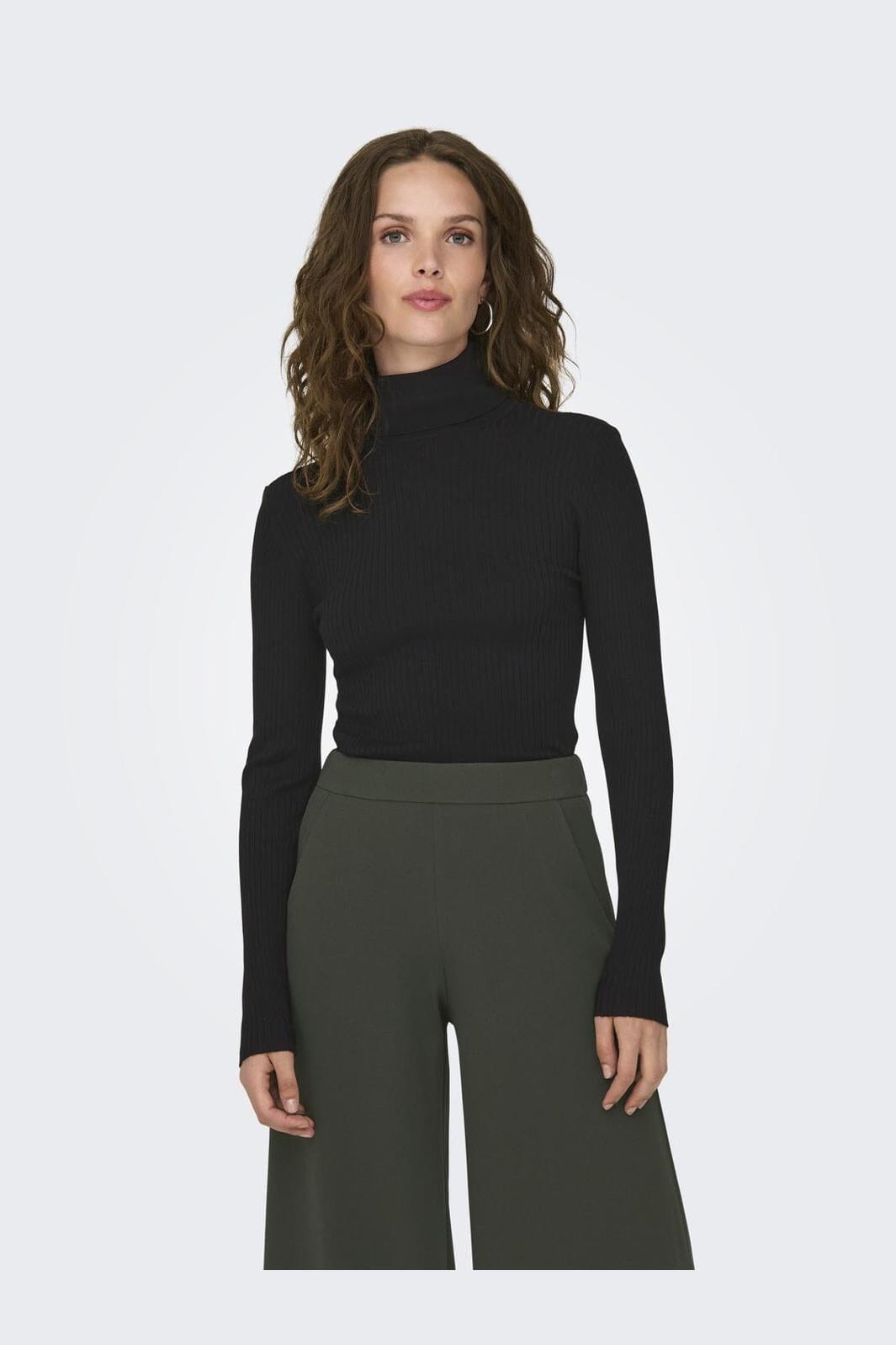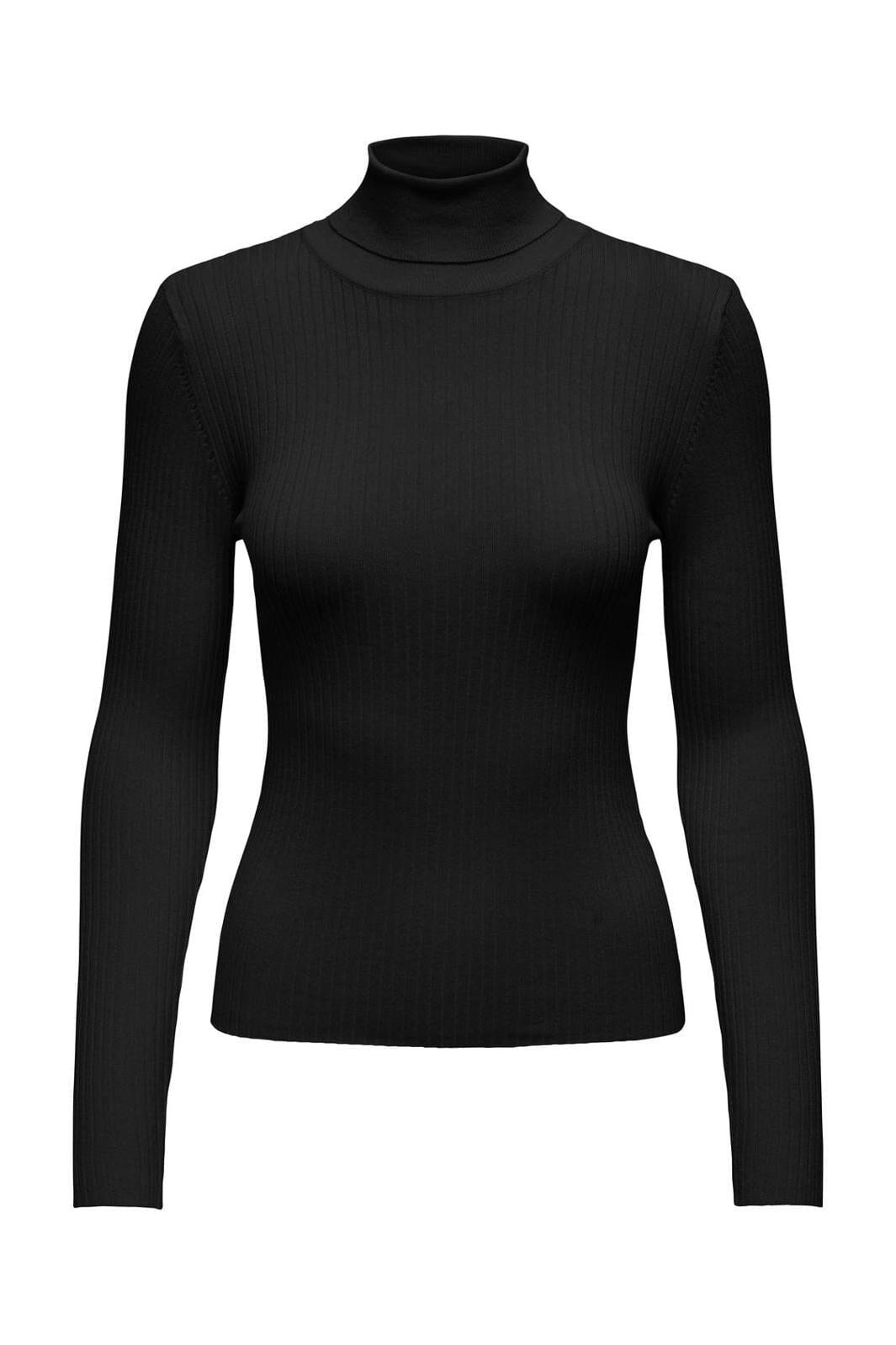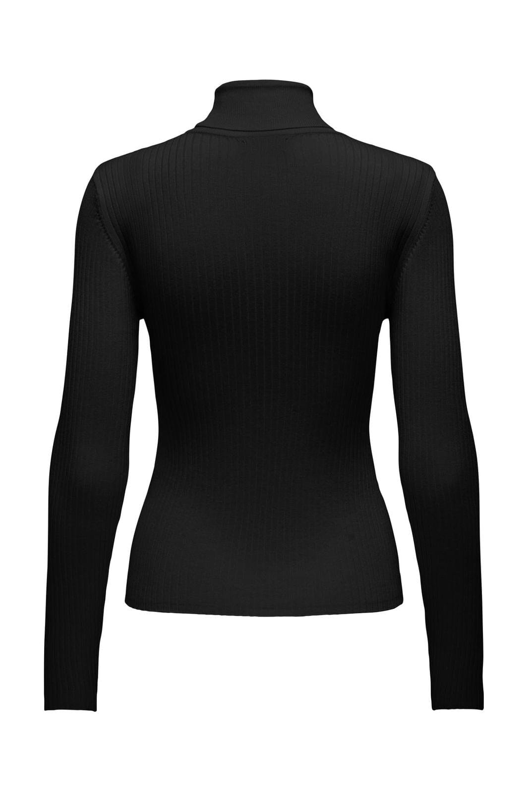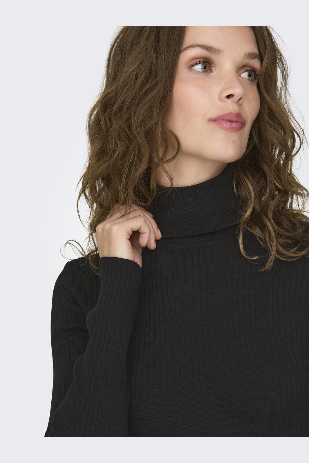 Zwarte coltrui van JDY met ribbeltextuur. De trui heeft een hoge col en lange mouwen met ribgebreide randen die zorgen voor een goede pasvorm.