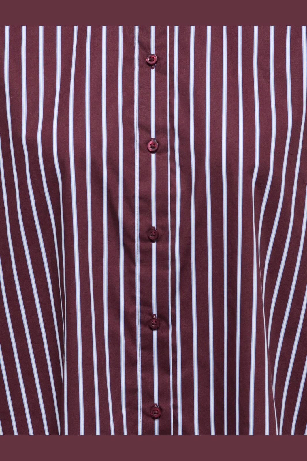 Gestreept shirt van JDY met verticale strepen in bordeaux, lichtblauw en wit. Het shirt heeft een klassieke overhemdkraag en een knoopsluiting aan de voorkant.