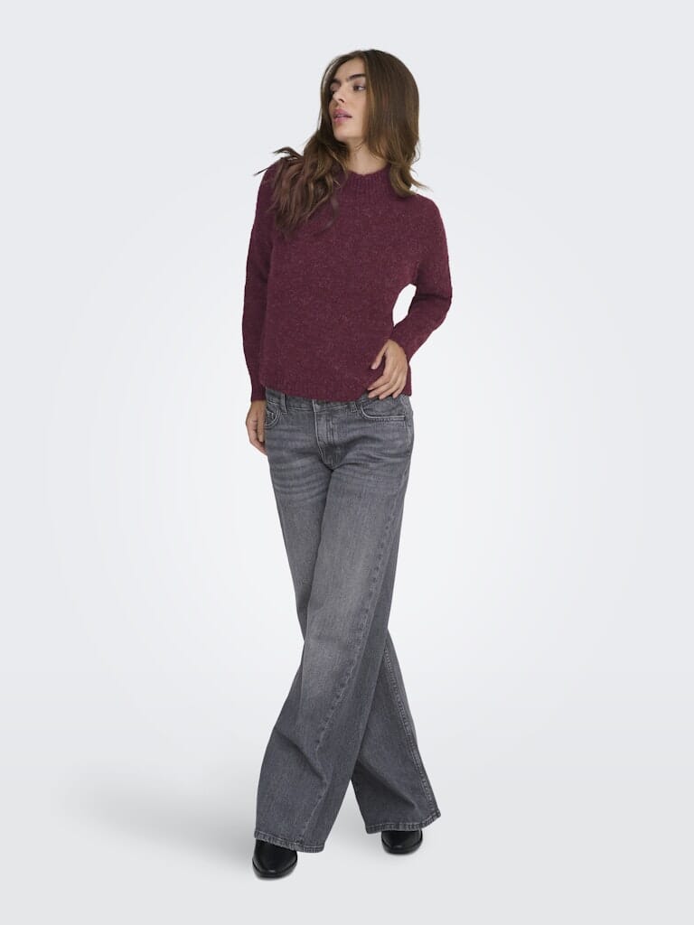 JDY Jdyzoey Life L/S Hn Raglan Pul Knt Kleur: 4890258 Maroon Banner Melange