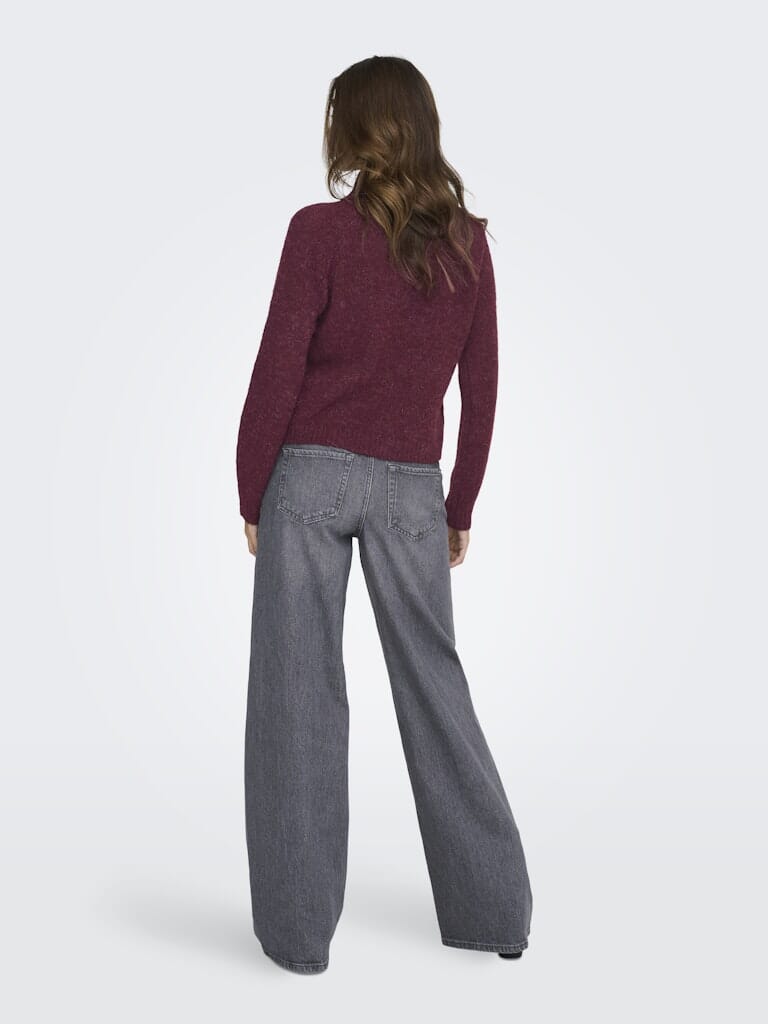 Gebreide trui van JDY in maroonkleurige melange. De hoge hals en raglanmouwen geven de trui een ontspannen stijl, terwijl de ribboorden bij de mouwen zorgen voor een goede pasvorm.