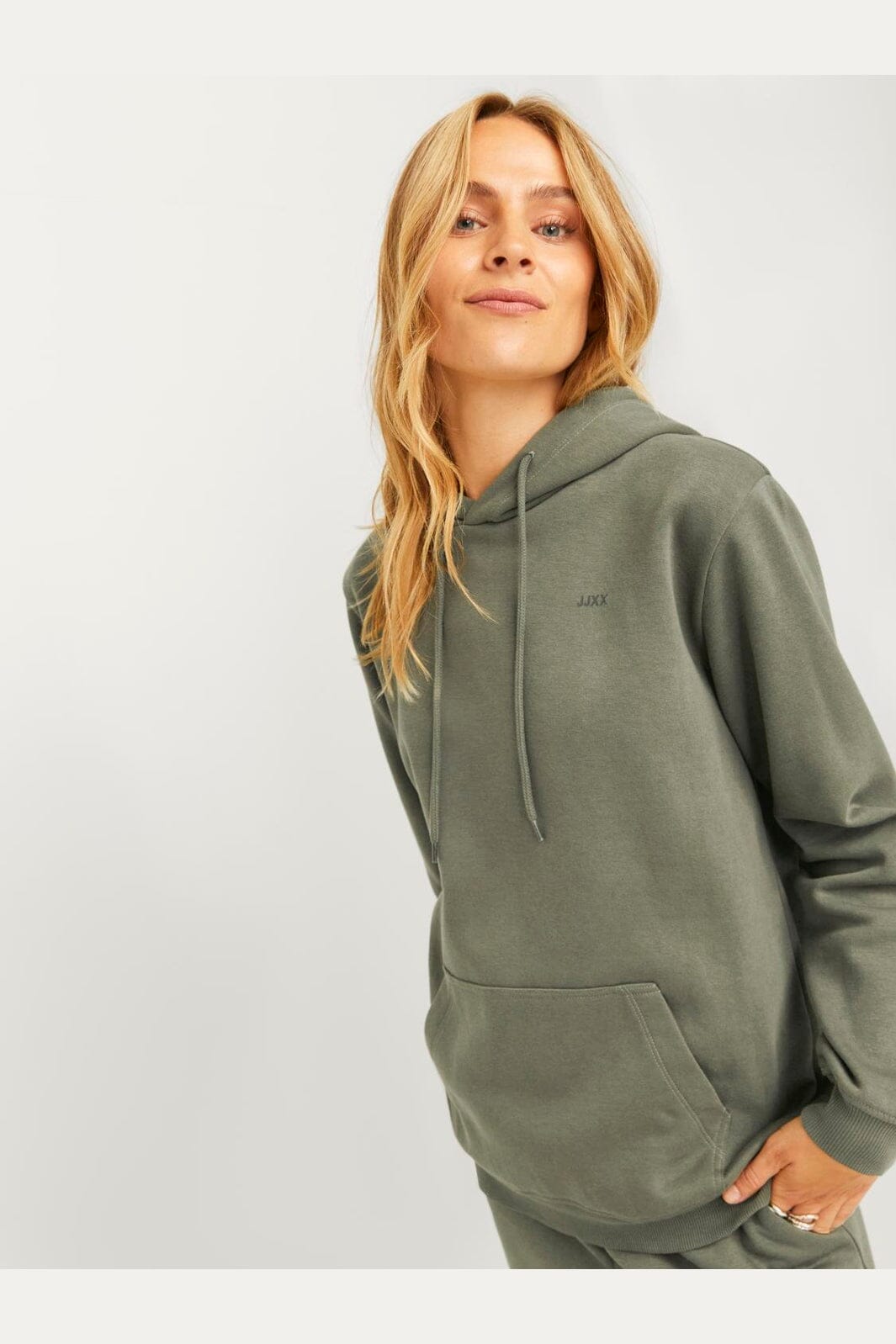 Groene hoodie van Jjxx met een losse pasvorm. Gemaakt van zachte katoen en gerecycled polyester met geborduurde details en een discreet logo op de borst.